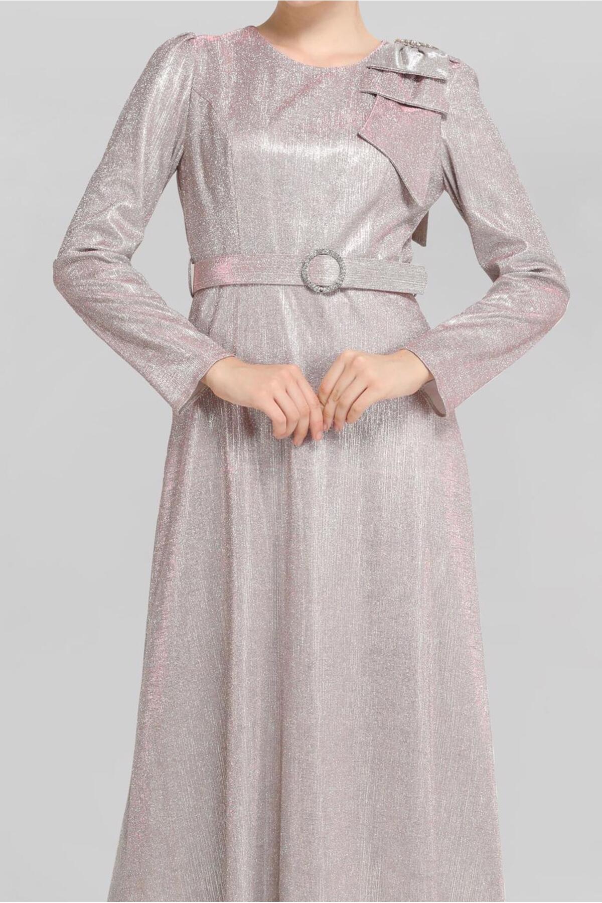 خرید اینترنتی لباس شب براق با سنگ دوزی، طرح ۴۰۷۶۹ برند آلوینا Alvina اورجینال از ALVİNA نمایندگی ترکیه