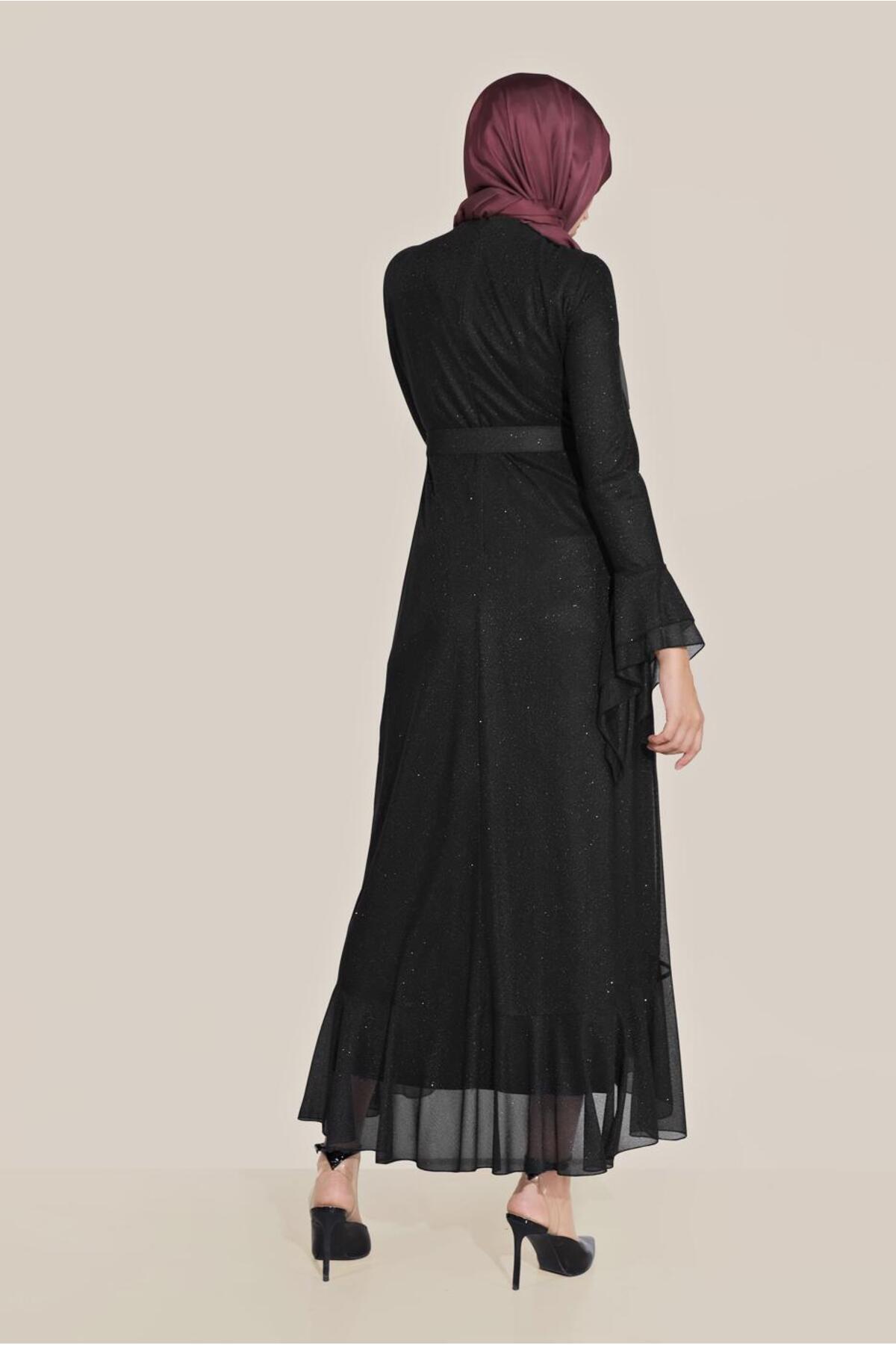 خرید اینترنتی لباس مجلسی زنانه با کمربند آستین شیپوری ۴۰۷۷۳ برند آلوینا Alvina اورجینال از ALVİNA نمایندگی ترکیه