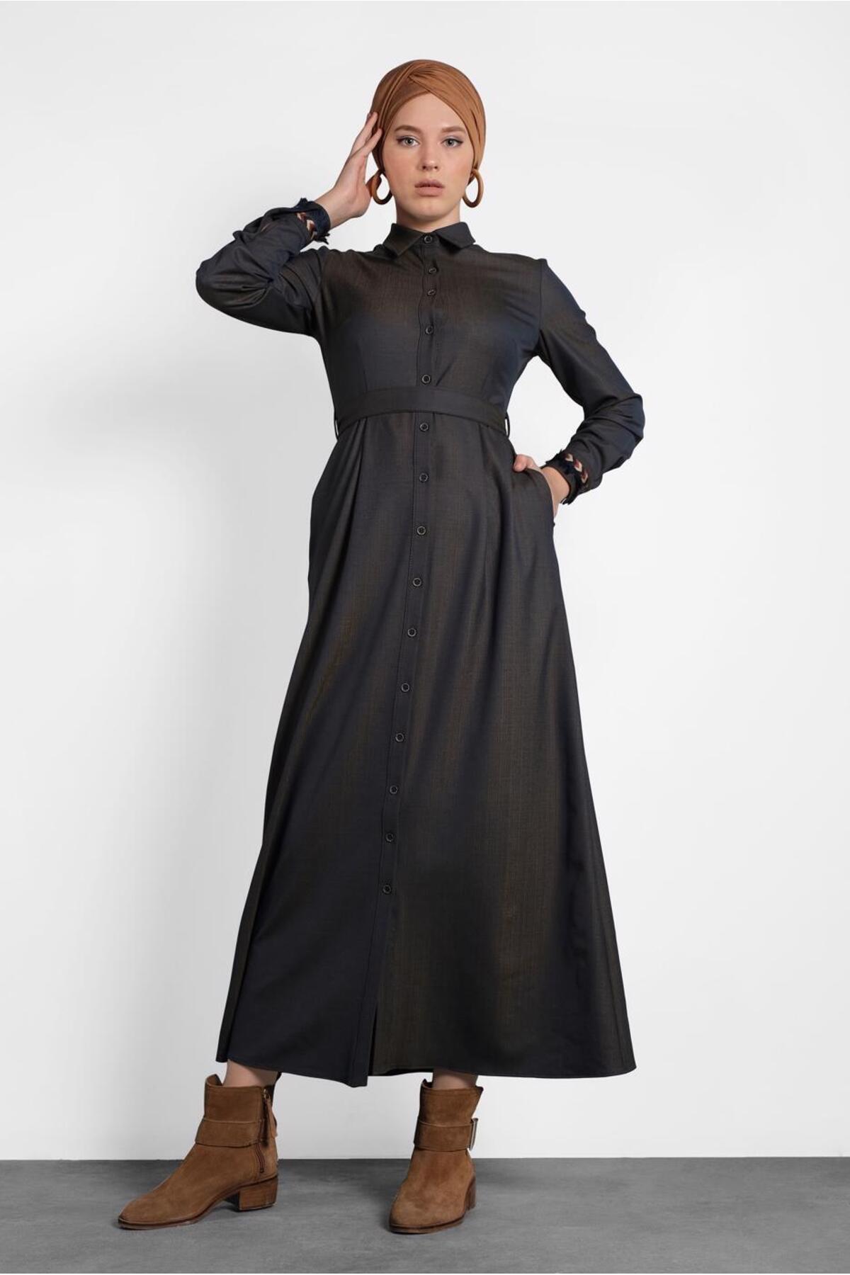 خرید اینترنتی لباس مجلسی دکمهدار با کمربند سرتاسری ۴۰۲۱۴ برند آلوینا Alvina اورجینال از ALVİNA نمایندگی ترکیه