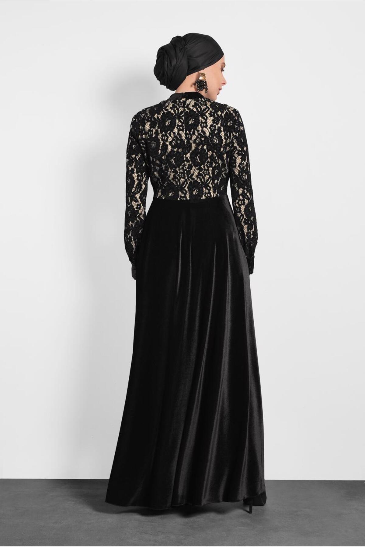 خرید اینترنتی لباس مجلسی یقه بسته مخمل براق گیپور ۴۰۲۳۹ برند آلوینا Alvina اورجینال از ALVİNA نمایندگی ترکیه
