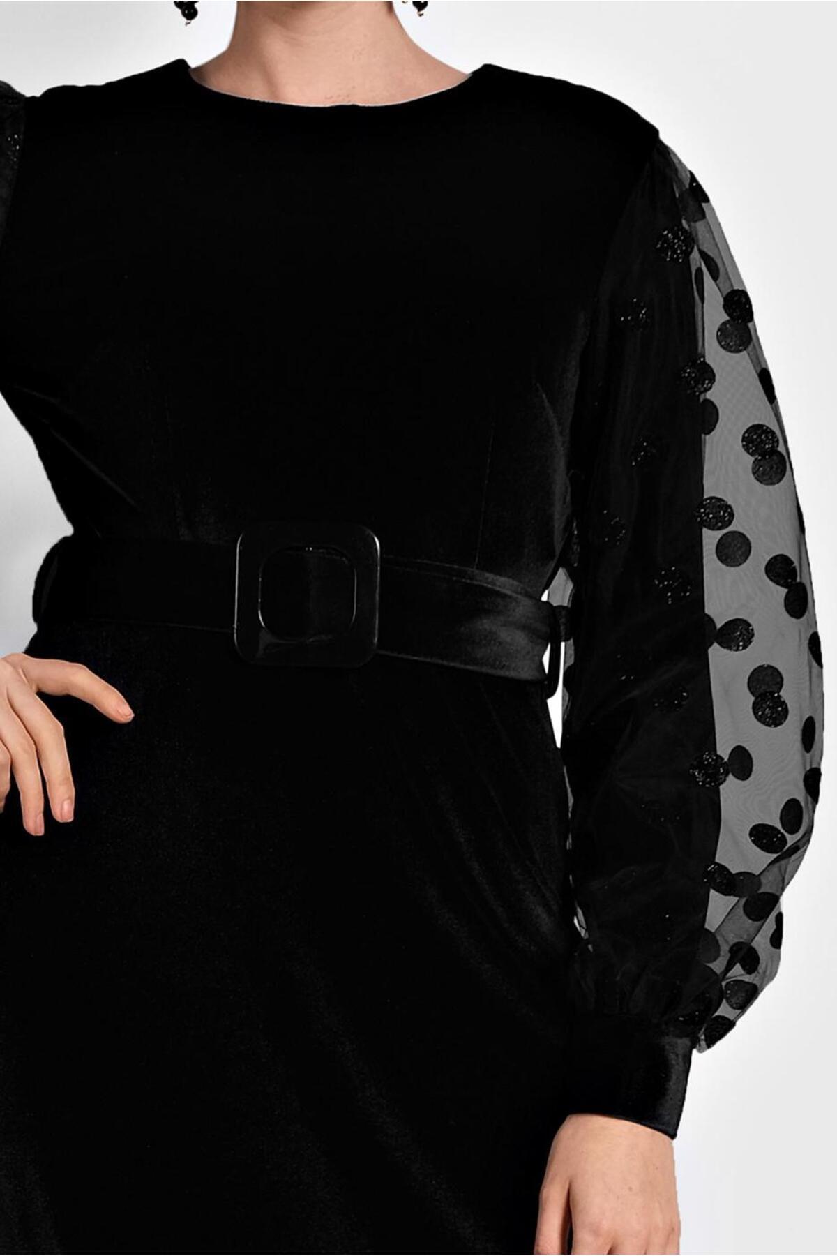 خرید اینترنتی لباس مجلسی مخمل با آستین و کمربند از جنس تور ۴۰۳۷۸ برند آلوینا Alvina اورجینال از ALVİNA نمایندگی و فروشگاه معتبر ترکیه