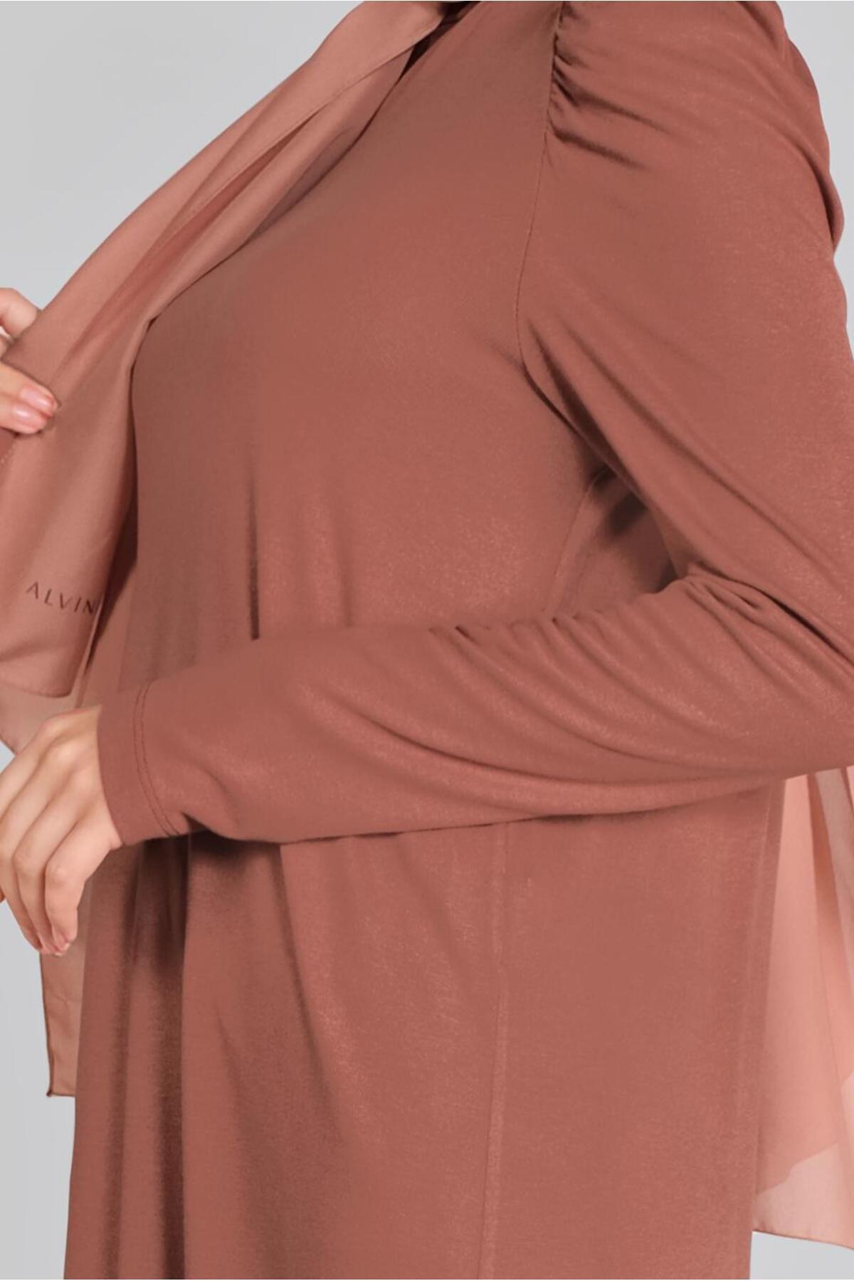 خرید اینترنتی تونیک پیراهنی طرح لاکپشتی با شانههای چیندار ۴۱۲۳۳ برند آلوینا Alvina اورجینال از ALVİNA نمایندگی ترکیه