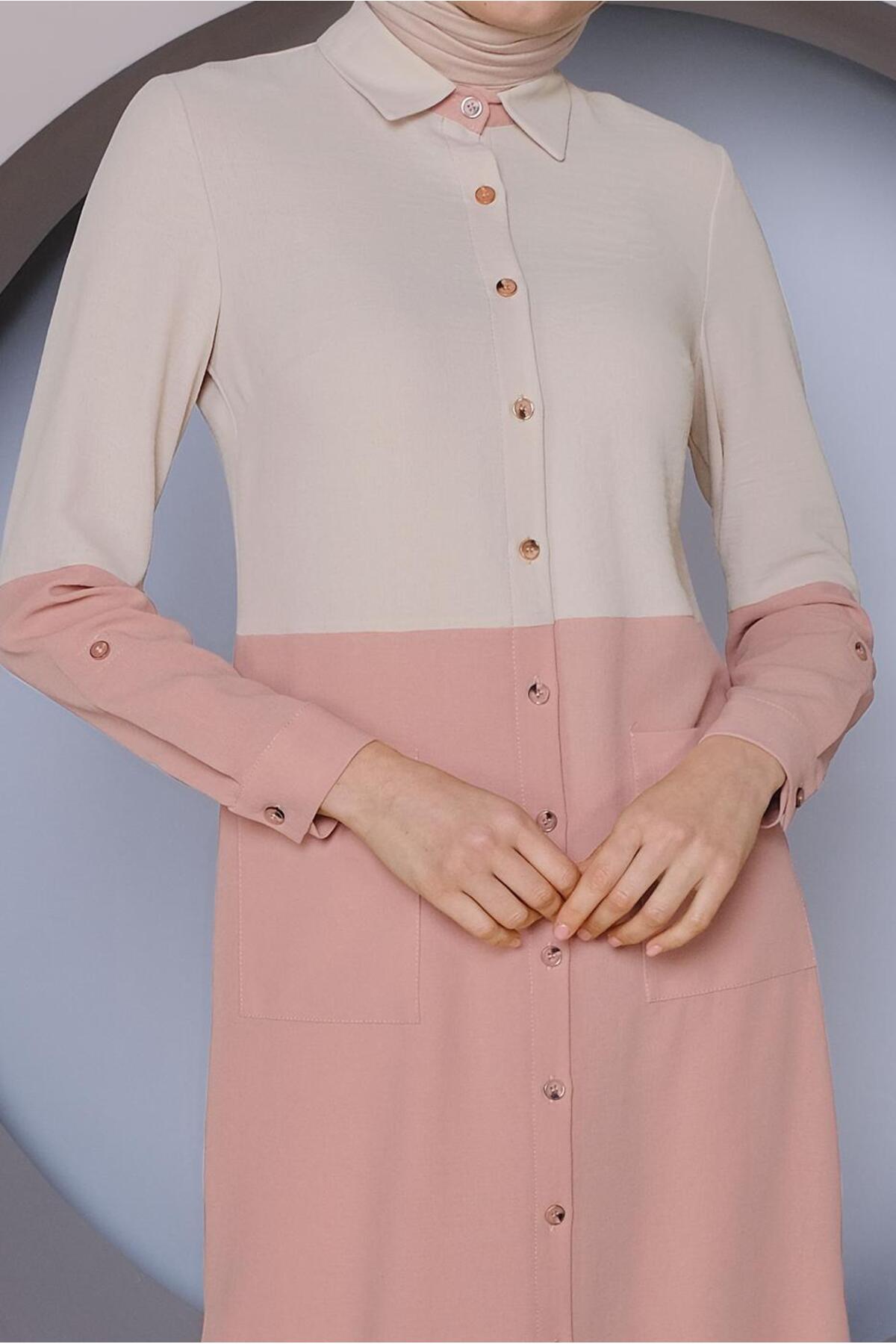 خرید اینترنتی تونیک دو رنگ دکمهدار سرتاسری ۴۱۳۹۱ برند آلوینا Alvina اورجینال از ALVİNA نمایندگی ترکیه