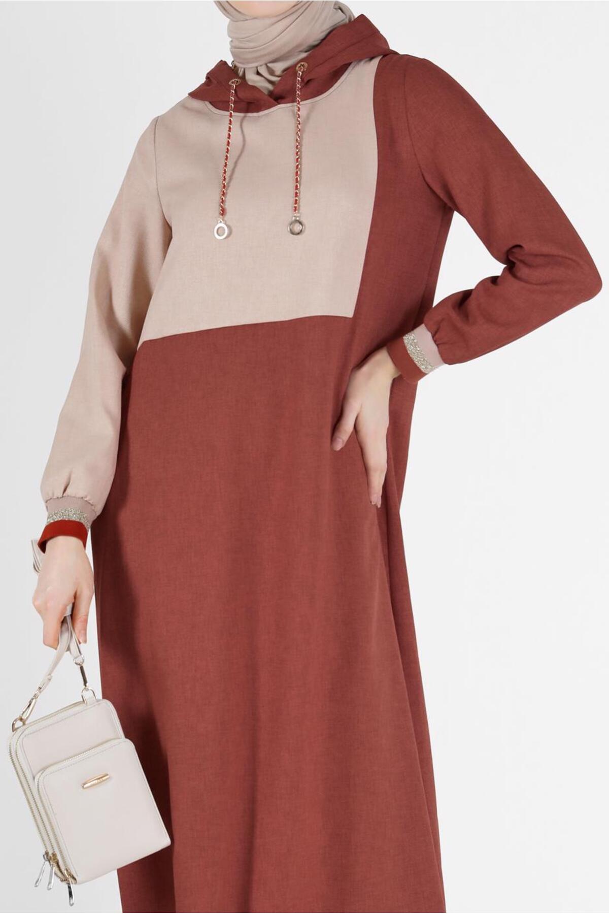 خرید اینترنتی لباس مجلسی کلاه دار دو رنگ ۴۲۳۱۴ برند آلوینا Alvina اورجینال از ALVİNA نمایندگی ترکیه