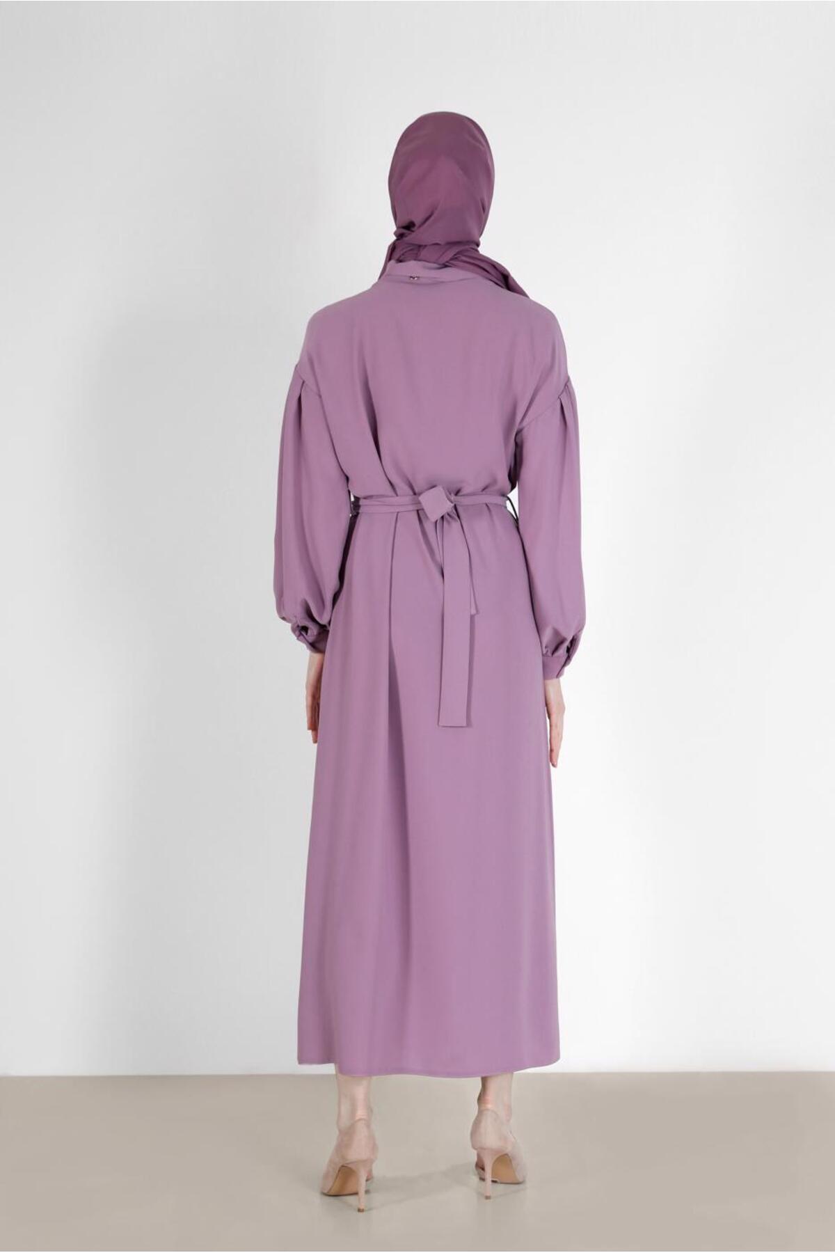 این لباس کلاسیک با کمر بنددار که بهطور خاص برای مجموعه لباسهای پوشیده طراحی شده است، ظاهری شیک و زیبا ارائه میدهد.