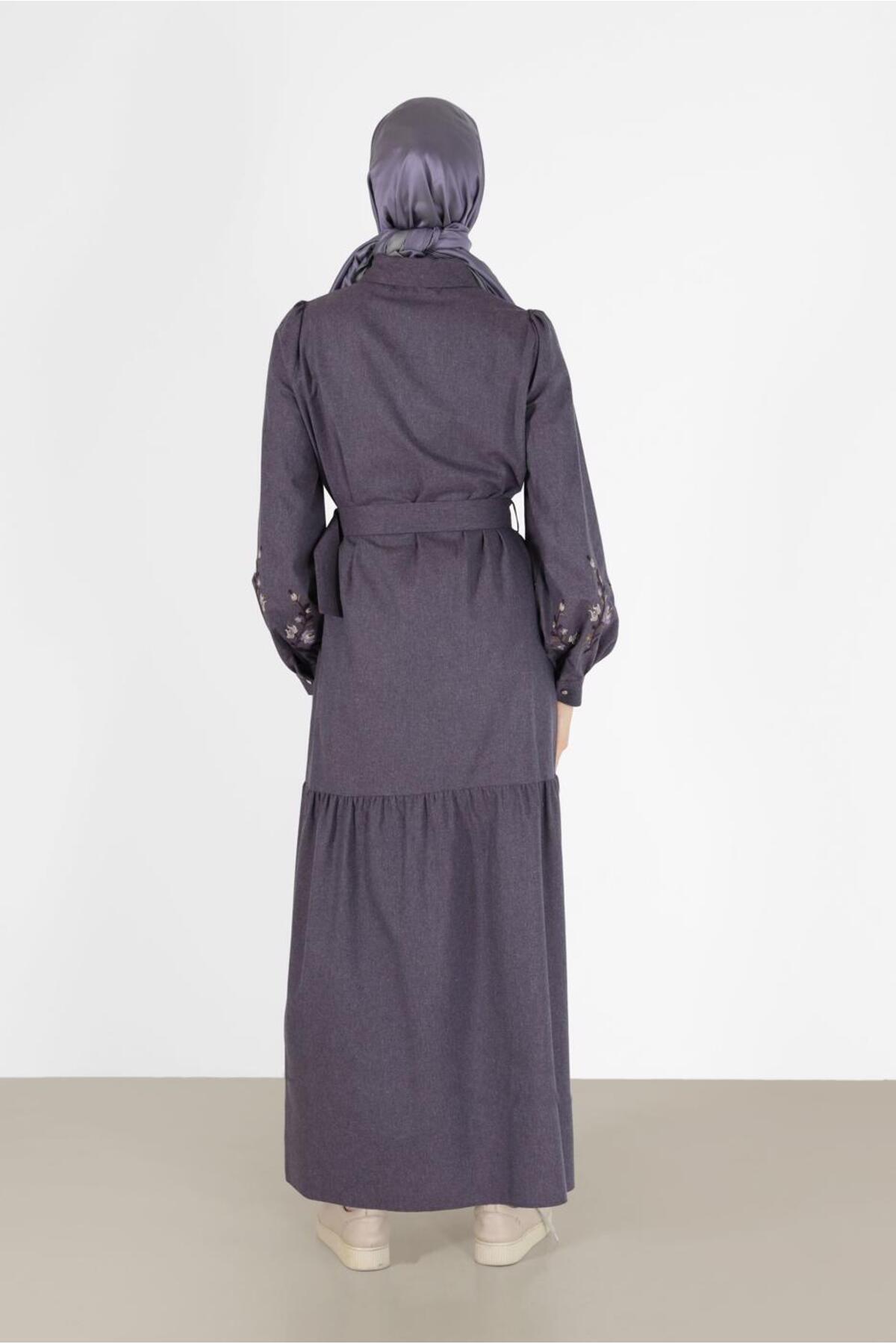 خرید اینترنتی پیراهن مجلسی کمربنددار با آستین گلدوزی شده ۴۲۳۷۹ برند آلوینا Alvina اورجینال از ALVİNA نمایندگی ترکیه