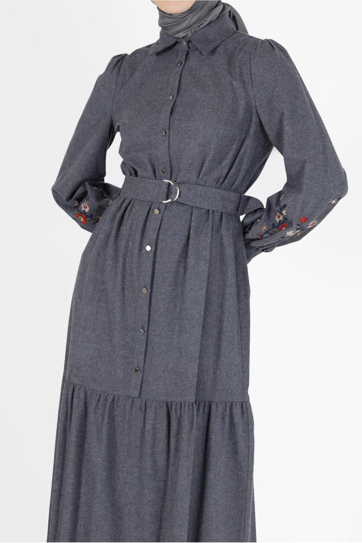 خرید اینترنتی پیراهن مجلسی کمربنددار با آستین گلدوزی شده ۴۲۳۷۹ برند آلوینا Alvina اورجینال از ALVİNA نمایندگی ترکیه