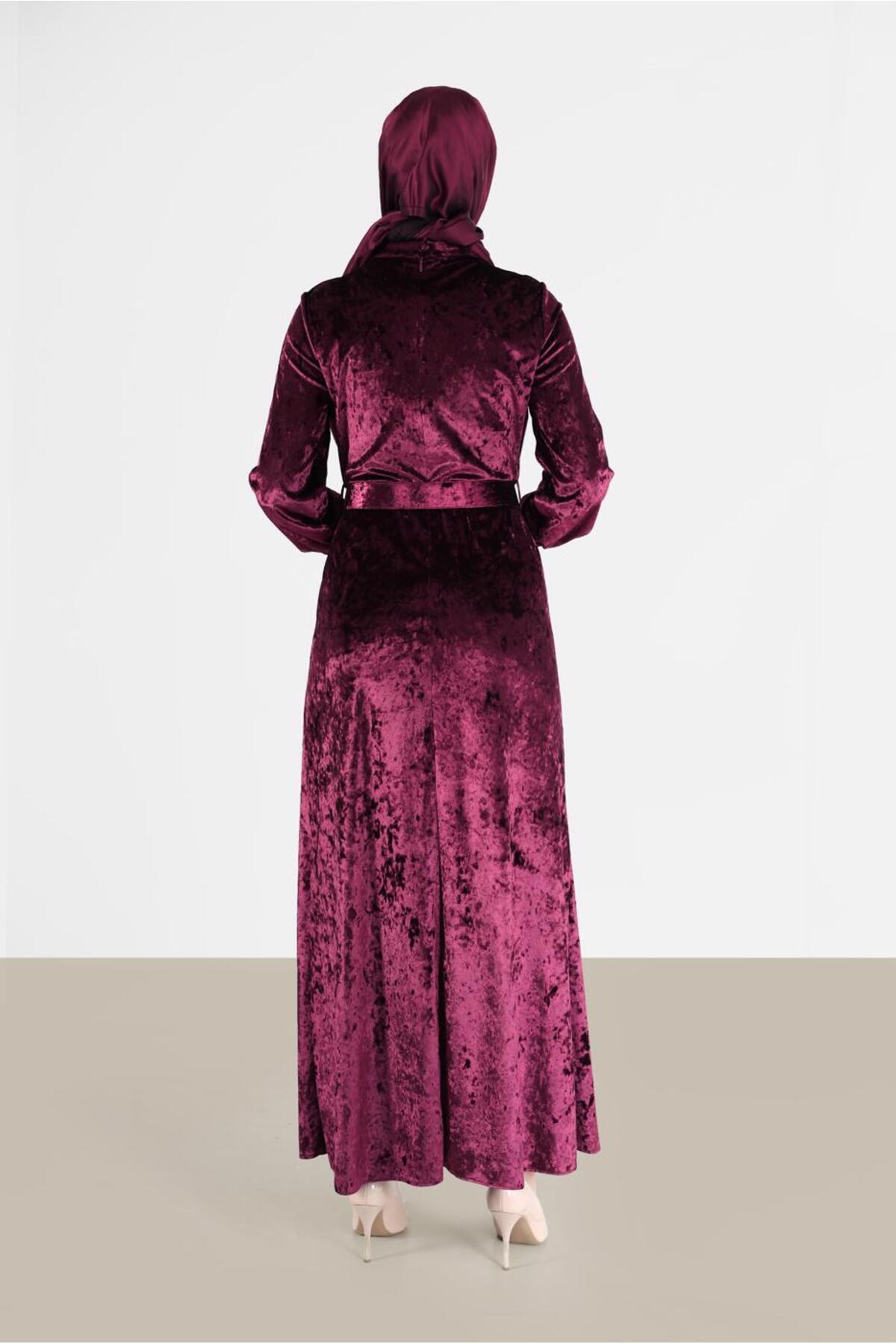 خرید اینترنتی لباس مجلسی مخمل با کمربند ۴۲۴۱۴ برند آلوینا Alvina اورجینال از ALVİNA نمایندگی ترکیه