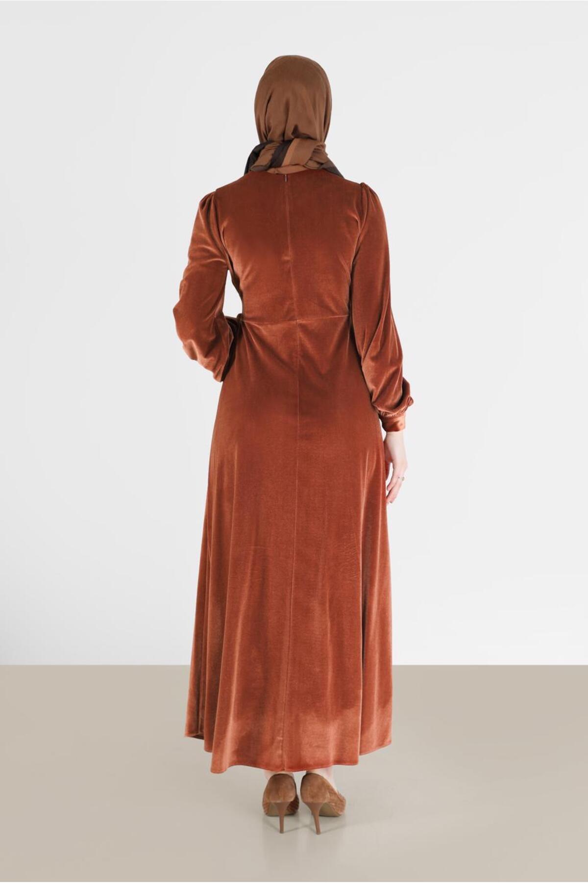 خرید اینترنتی لباس مخمل با جزئیات کراوات از پهلو ۴۲۴۱۵ برند آلوینا Alvina اورجینال از ALVİNA نمایندگی ترکیه