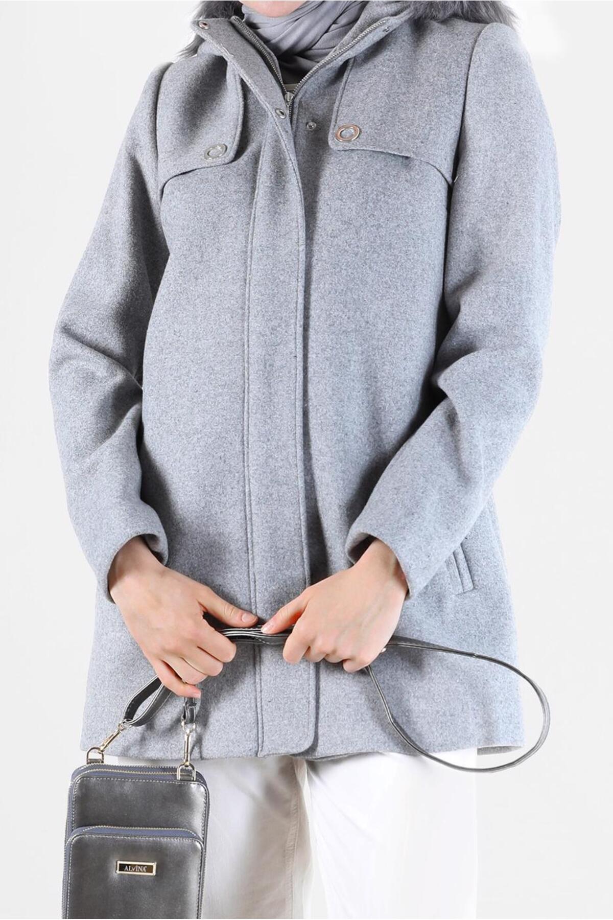 خرید اینترنتی کت زیپدار با جزئیات خزدار روی کلاه ۹۰۲۴۰ برند آلوینا Alvina اورجینال از ALVİNA نمایندگی ترکیه