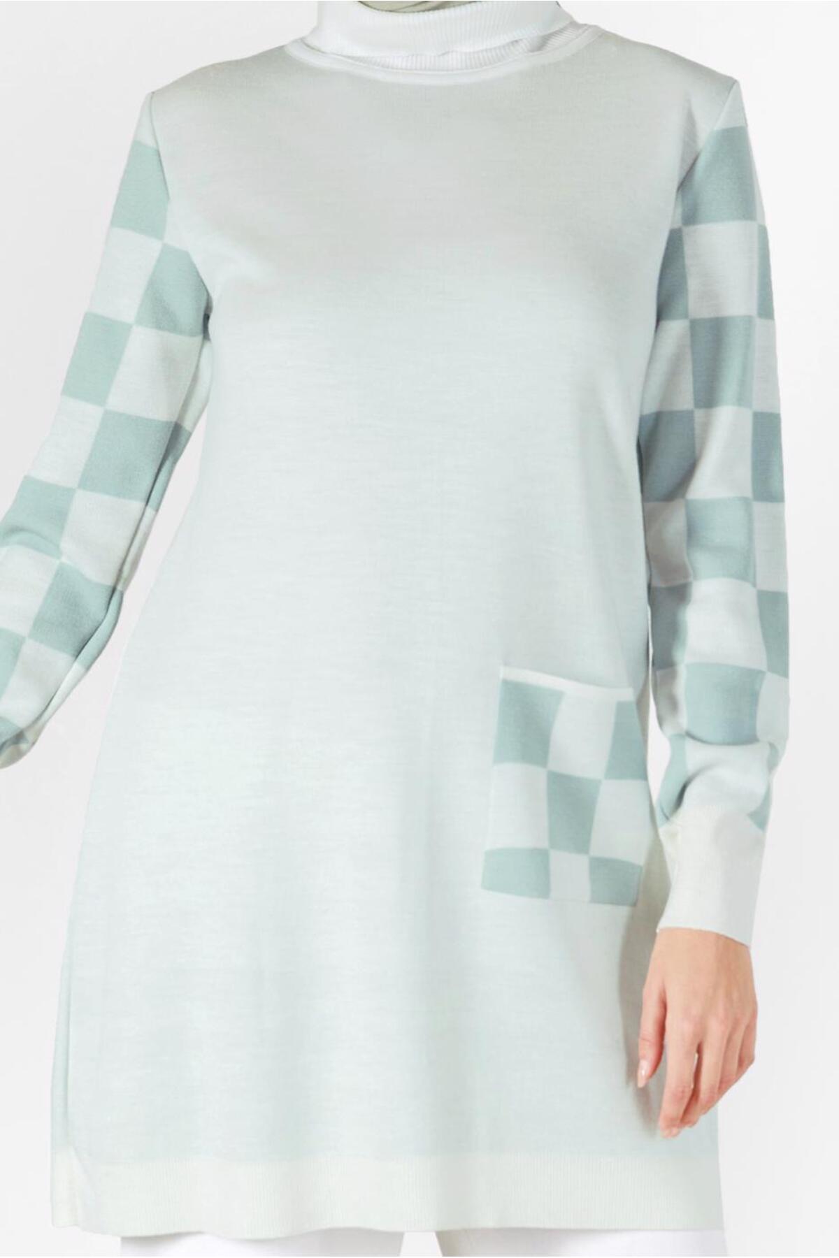 خرید اینترنتی تونیک بافتنی جیبدار طرحدار مربعی کد ۴۲۰۲۲ برند آلوینا Alvina اورجینال از ALVİNA نمایندگی ترکیه