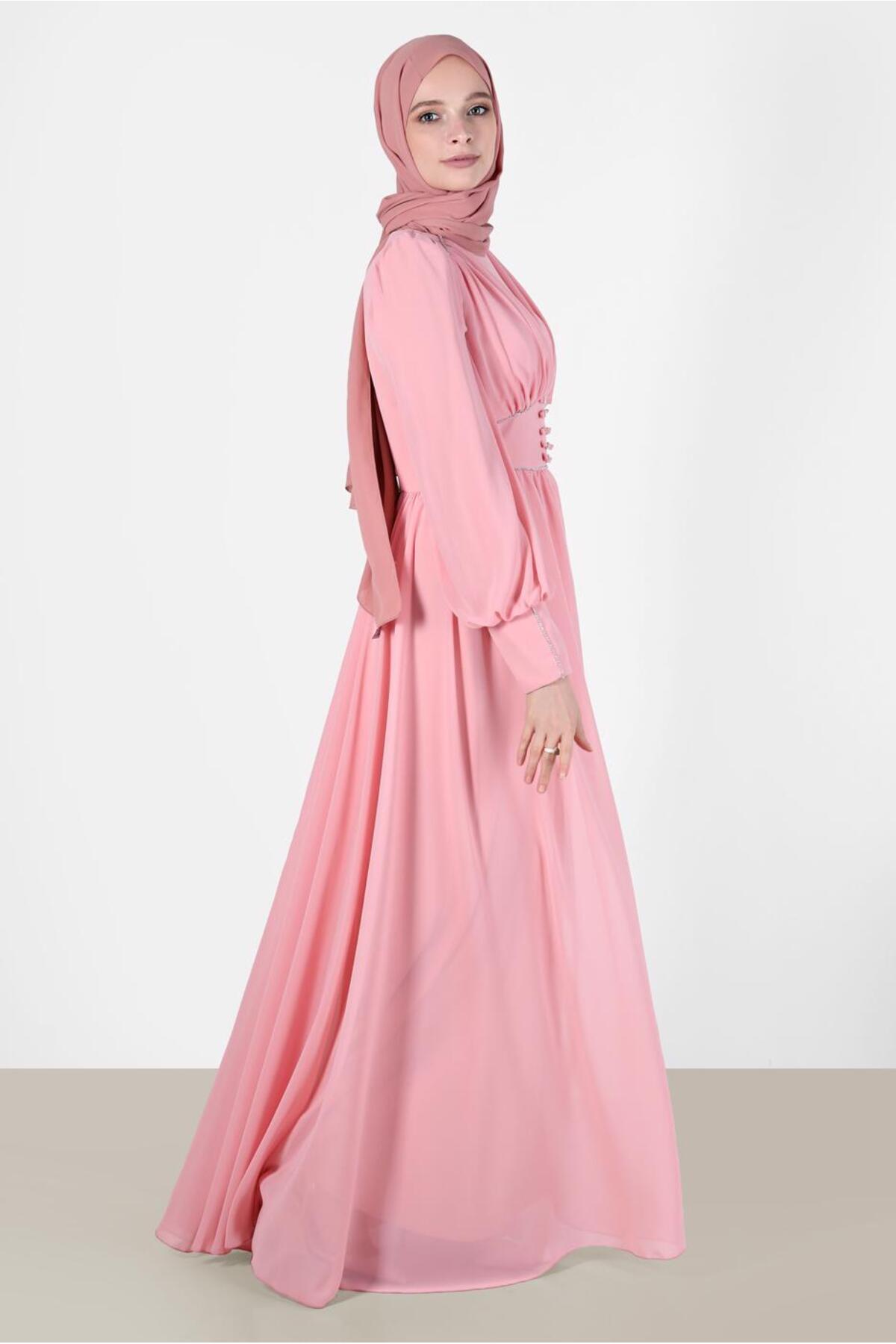 خرید اینترنتی لباس شب حریر با سنگ دوزی جزئیات ۵۰۲۲۱ برند آلوینا Alvina اورجینال از ALVİNA نمایندگی ترکیه
