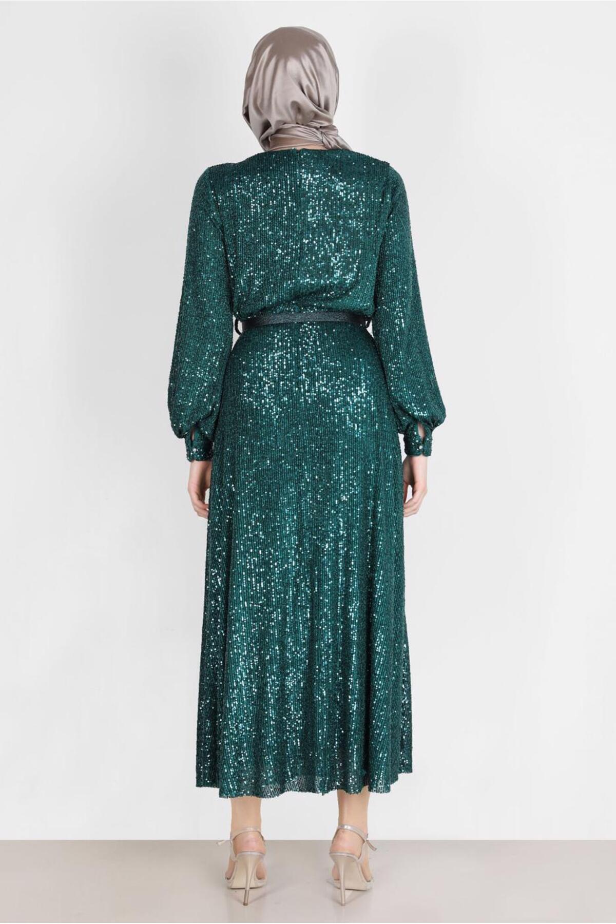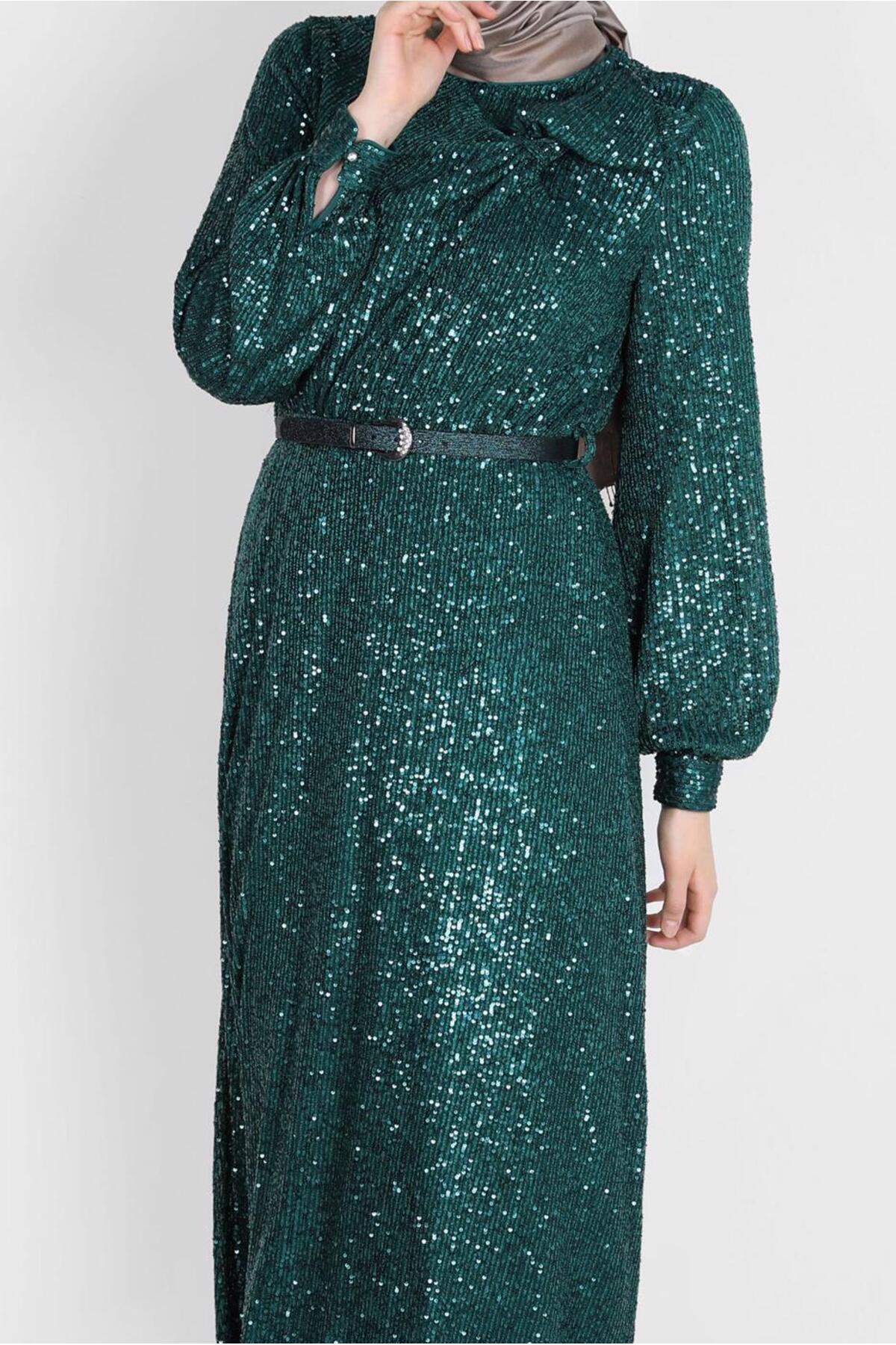 خرید اینترنتی لباس شب پولک دوزی شده پاپیونی کد ۵۰۲۳۲ برند آلوینا Alvina اورجینال از ALVİNA نمایندگی ترکیه