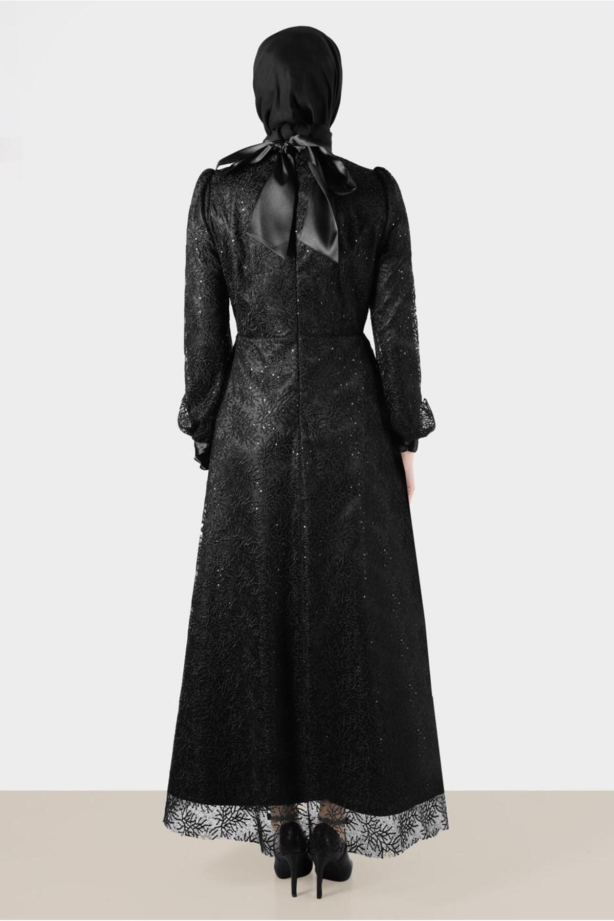 خرید اینترنتی لباس شب گیپور با ساتن، جزئیات ۵۰۲۵۸ برند آلوینا Alvina اورجینال از ALVİNA نمایندگی ترکیه