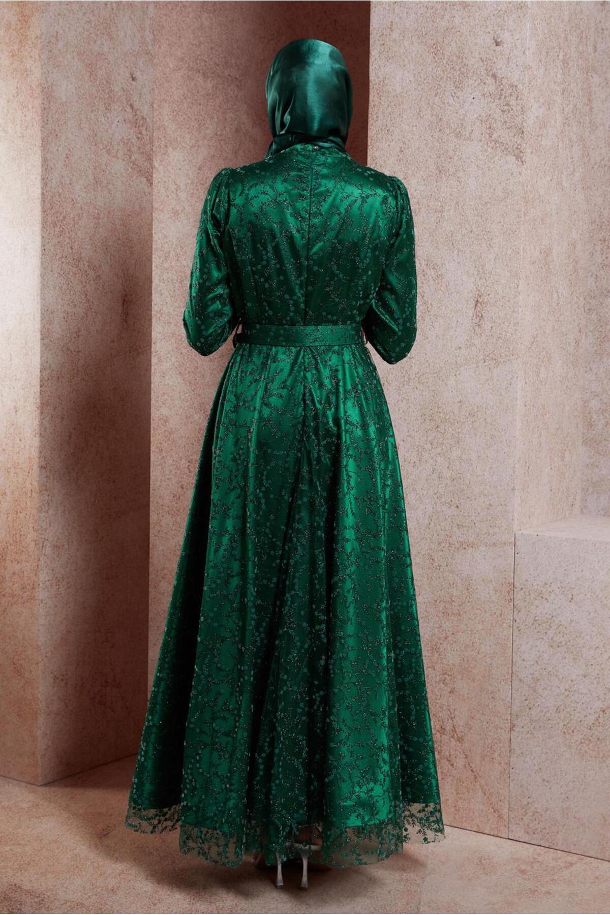 – این لباس شب کمربنددار، که به‌طور خاص برای مجموعه لباس‌های پوشیده طراحی شده است، ظاهری شیک و زیبا ارائه می‌دهد.