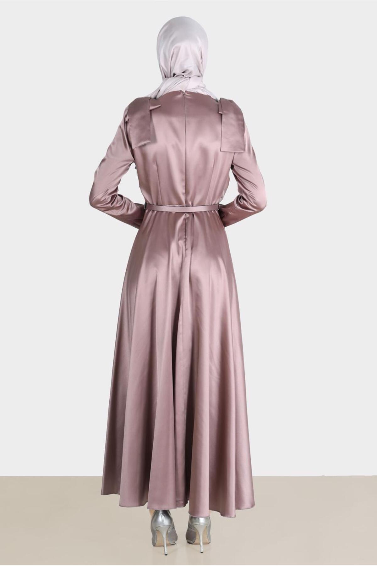 این لباس به عنوان یک قطعه زیبا در مجموعه لباسهای ساده، با خطوط مدرن و سنتی، خودنمایی میکند. یقه گرد آن، سبکی ساده اما مؤثر ارائه میدهد، در حالی که بافت ساتن آن، ظاهری نرم و لطیف به آن میبخشد.