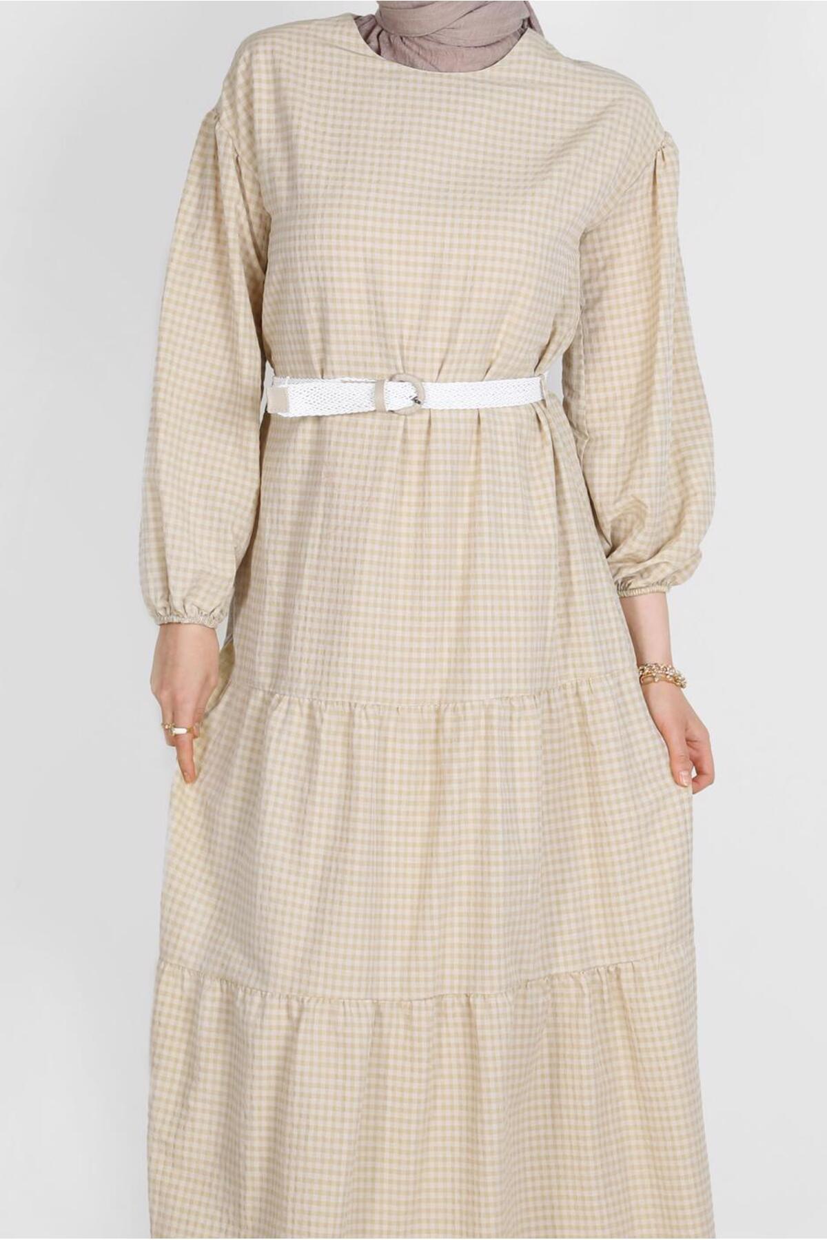 خرید اینترنتی لباس مجلسی طرحدار چهارخانه با کمربند، کد ۴۲۶۱۳ برند آلوینا Alvina اورجینال از ALVİNA نمایندگی ترکیه