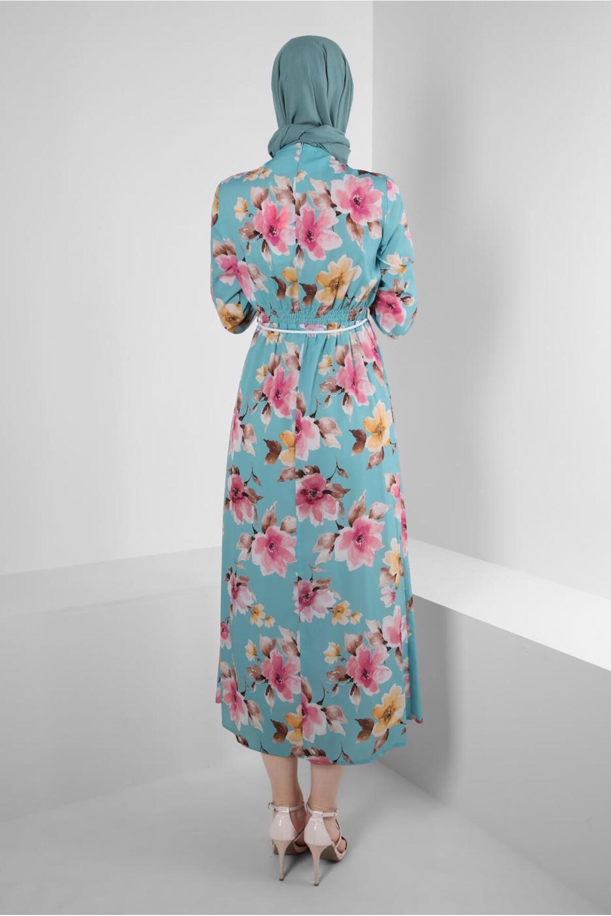 خرید اینترنتی لباس مجلسی کرپ طرح گلدار با سرآستینهای کشی ۴۲۸۸۹ برند آلوینا Alvina اورجینال از ALVİNA نمایندگی و فروشگاه معتبر ترکیه