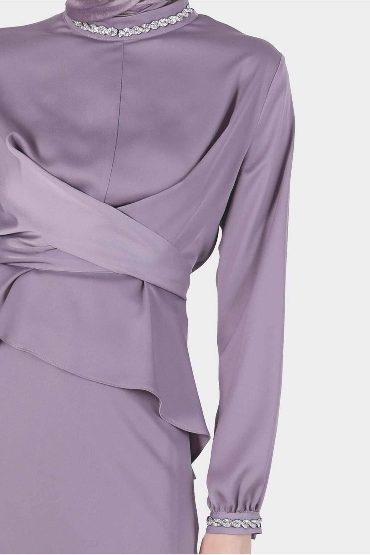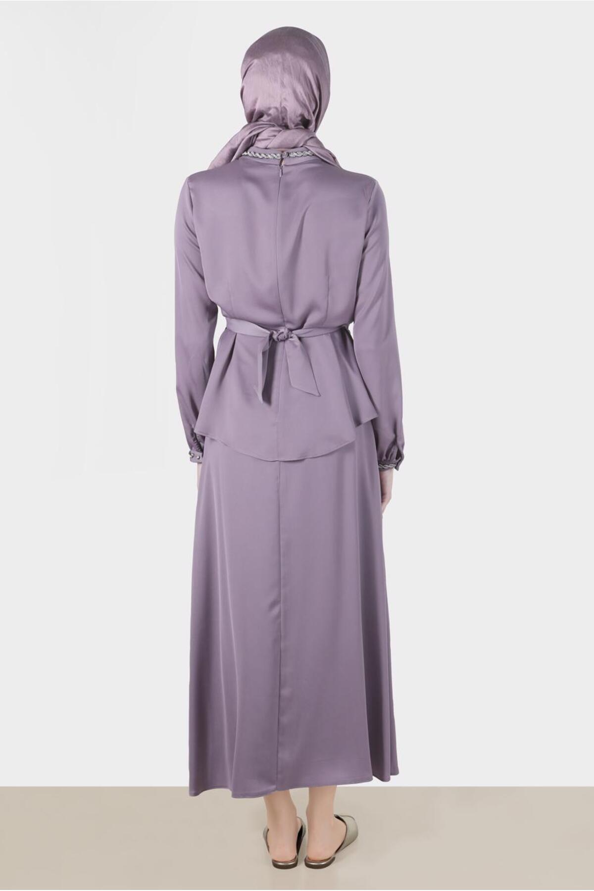 این کت و شلوار دو دامن ساتن، که به طور خاص برای مجموعه لباسهای پوشیده طراحی شده است، ظاهری شیک و زیبا ارائه میدهد.