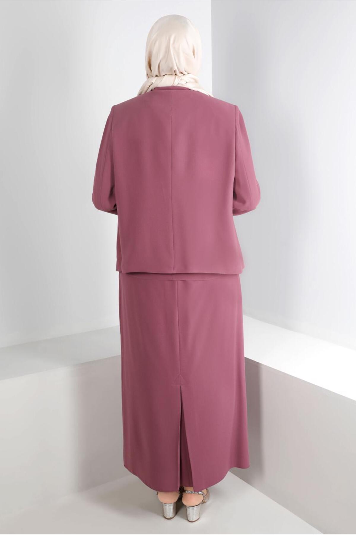 خرید اینترنتی کت و شلوار دامن سه تکه کرپ گل میخ دار با جزئیات 30286 برند آلوینا Alvina اورجینال از ALVİNA نمایندگی ترکیه