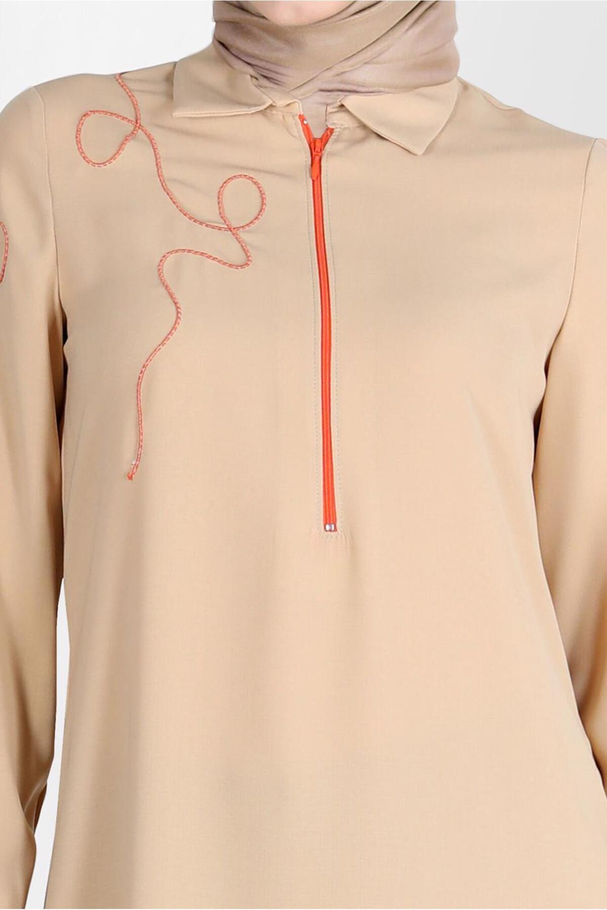 خرید اینترنتی تونیک زیپدار گلدوزیشده با جزئیات کد ۴۱۷۵۸ برند آلوینا Alvina اورجینال از ALVİNA نمایندگی ترکیه
