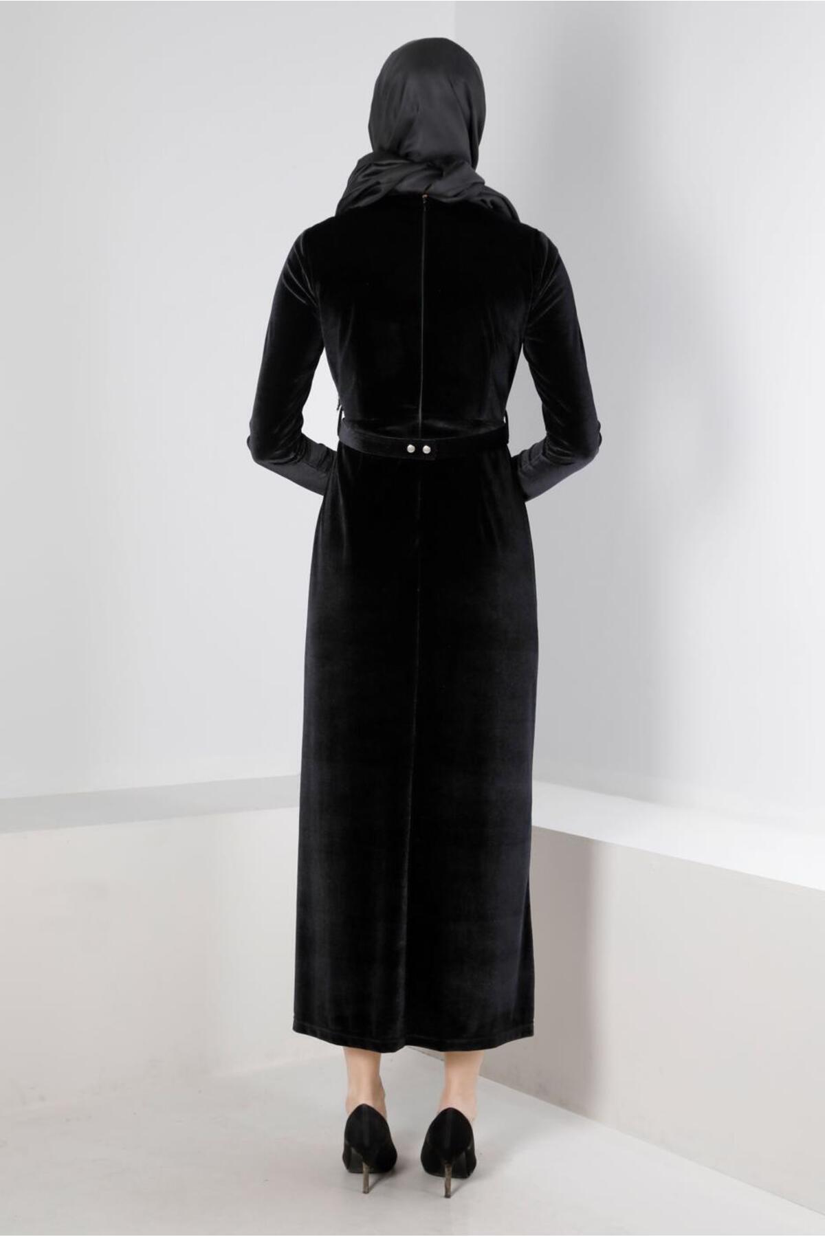 خرید اینترنتی لباس شب مخمل با کمربند طرح سنگ ۵۰۲۸۲ برند آلوینا Alvina اورجینال از ALVİNA نمایندگی ترکیه