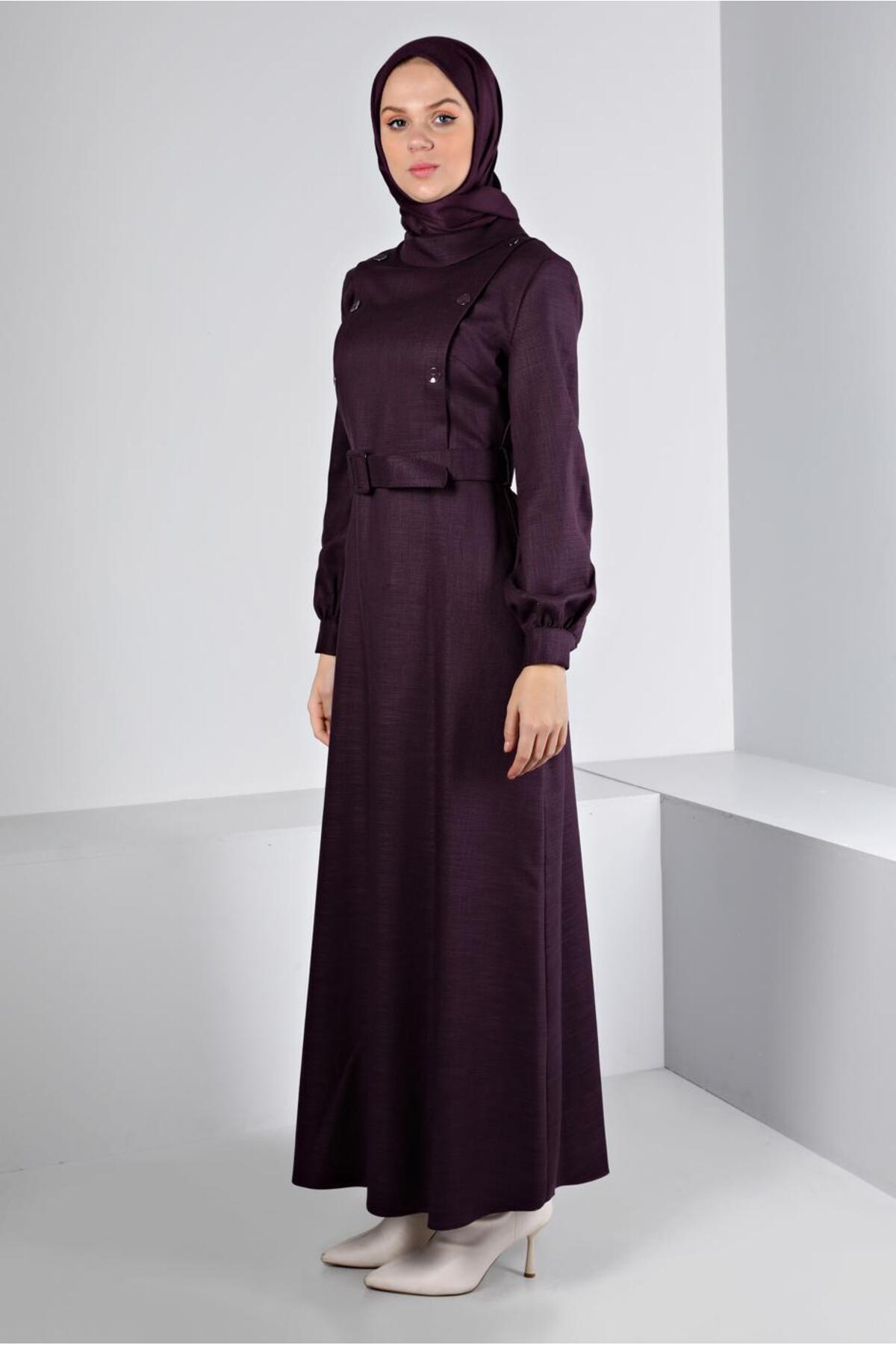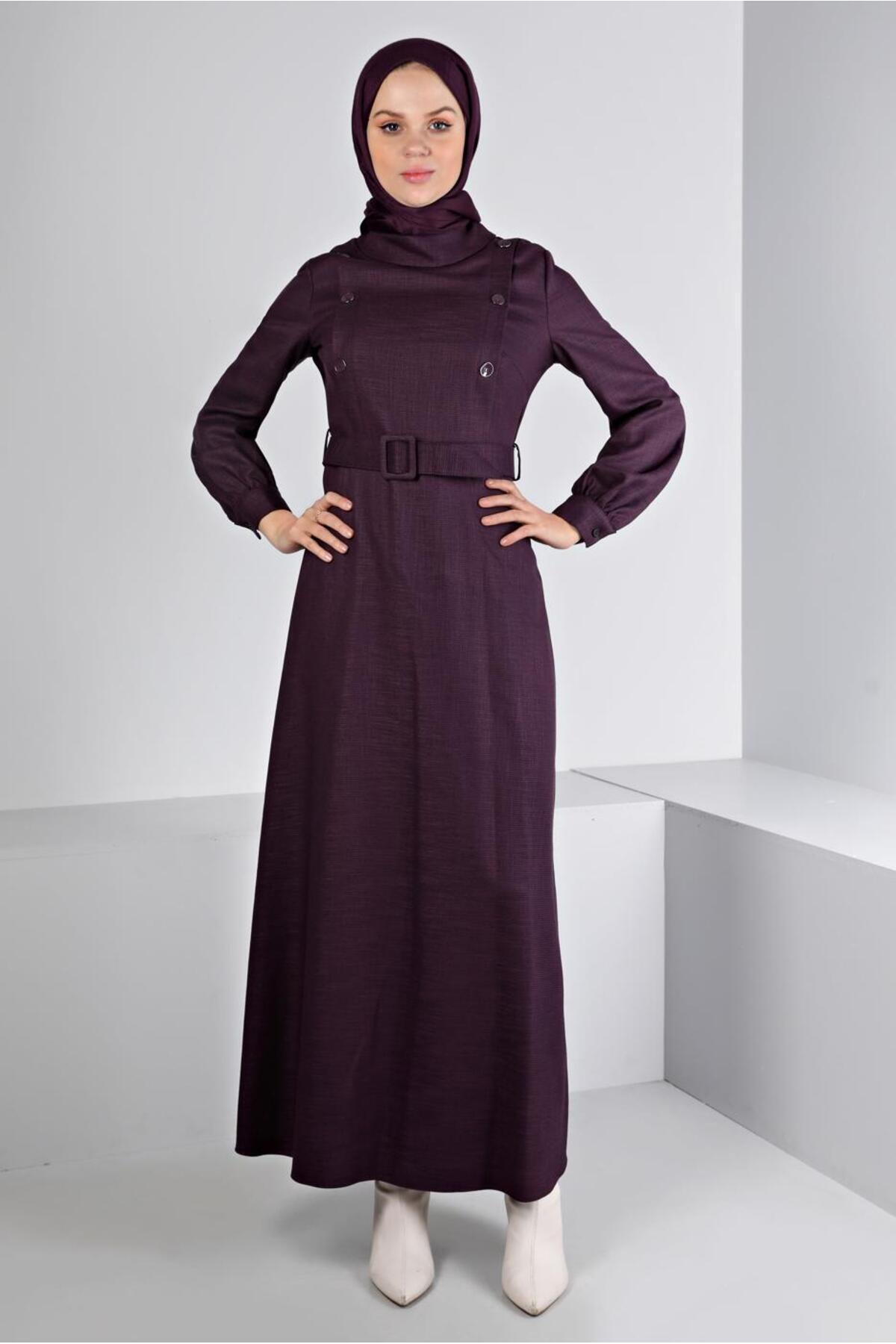 خرید اینترنتی لباس مجلسی دکمهدار با کمربند طرحدار ۴۳۴۳۹ برند آلوینا Alvina اورجینال از ALVİNA نمایندگی ترکیه
