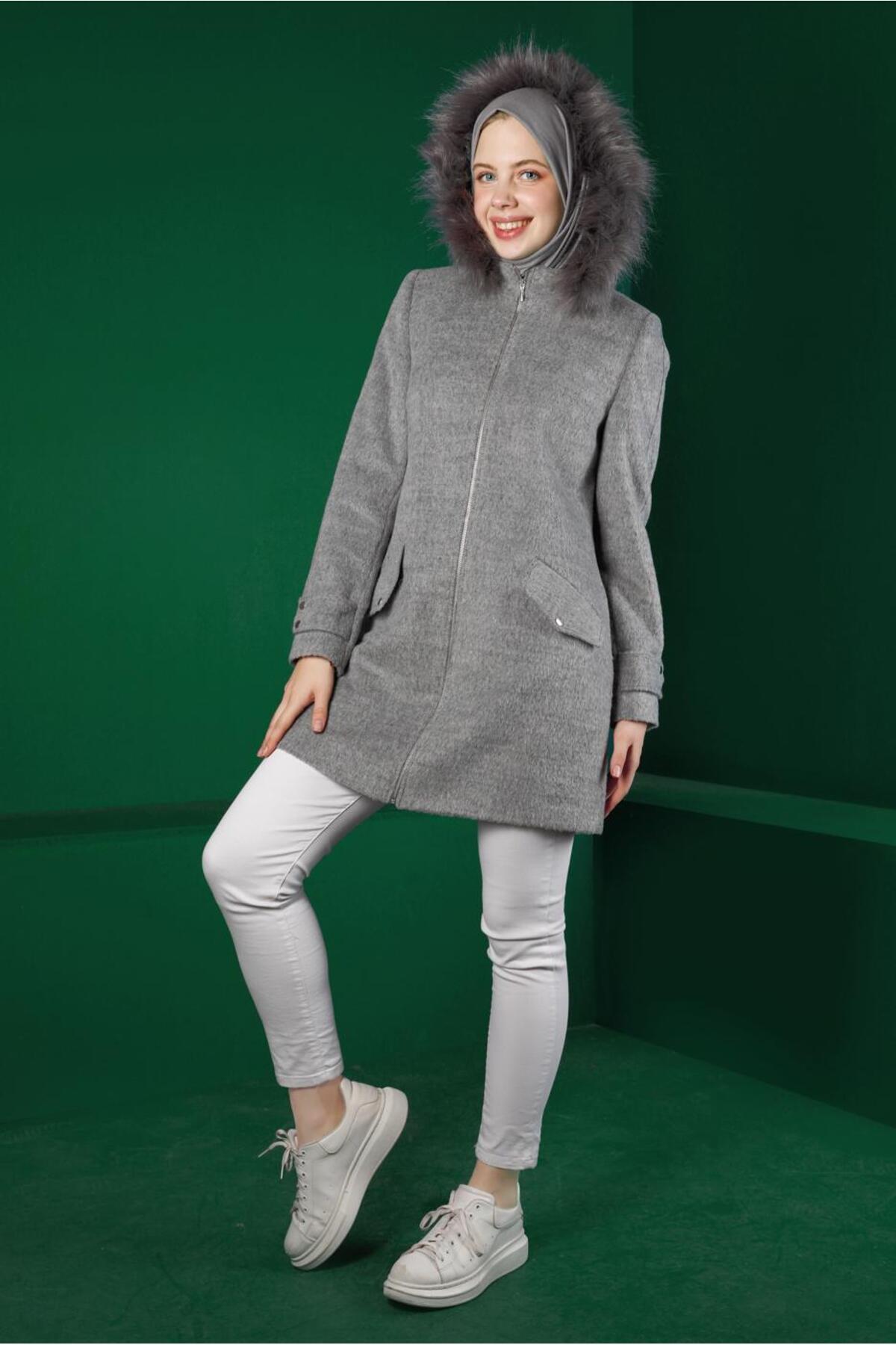 خرید اینترنتی کت خزدار کلاهدار ۹۰۳۰۹ برند آلوینا Alvina اورجینال از ALVİNA نمایندگی ترکیه