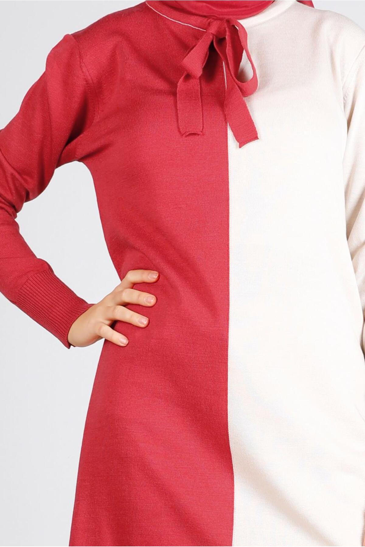 خرید اینترنتی تونیک بافتنی دو رنگ با جزئیات کراوات ۴۳۱۶۷ برند آلوینا Alvina اورجینال از ALVİNA نمایندگی ترکیه