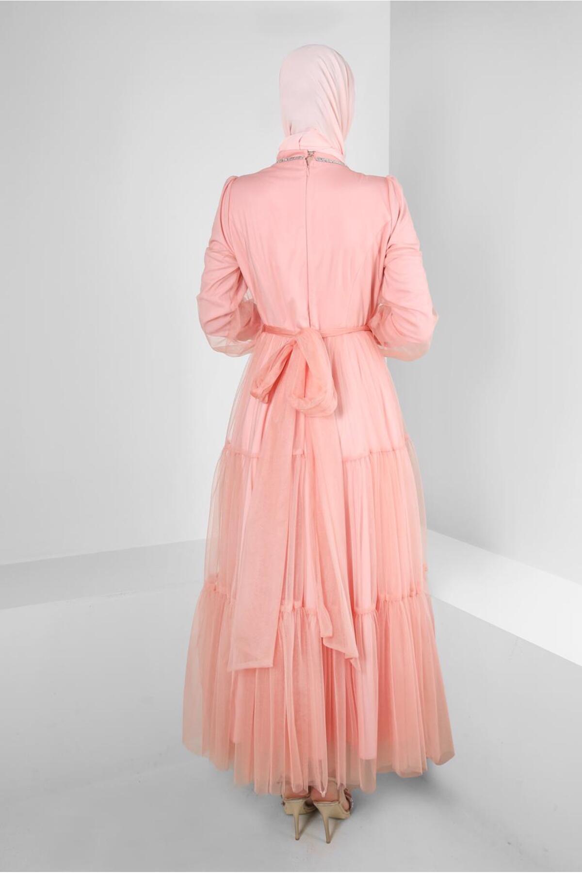 خرید اینترنتی لباس شب تور با سنگ دوزی شده، جزئیات ۵۰۳۰۶ برند آلوینا Alvina اورجینال از ALVİNA نمایندگی ترکیه