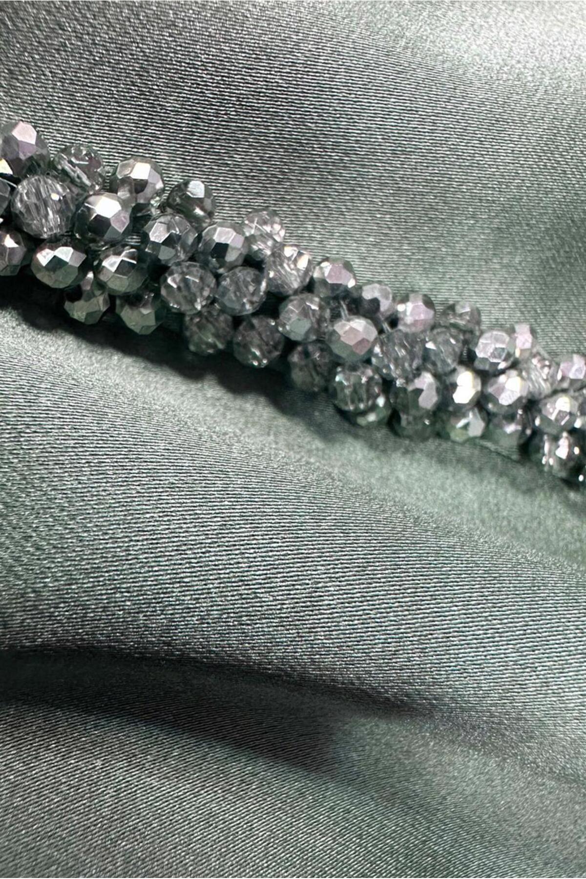 خرید اینترنتی لباس شب ساتن با کمربند سنگ دوزی شده ۵۰۳۱۰ برند آلوینا Alvina اورجینال از ALVİNA نمایندگی ترکیه
