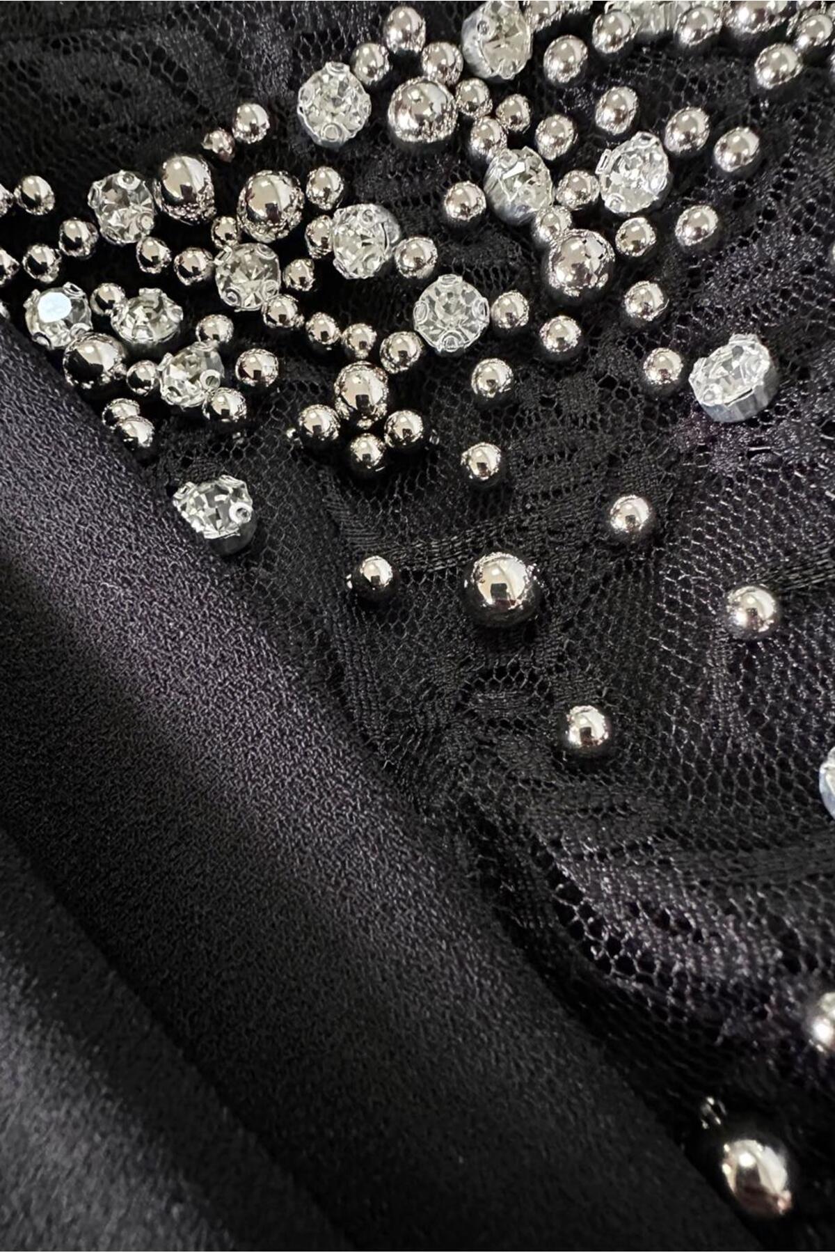 خرید اینترنتی لباس شب دانتل دوزی شده با مهره دوزی و جزئیات 50379 برند آلوینا Alvina اورجینال از ALVİNA نمایندگی ترکیه