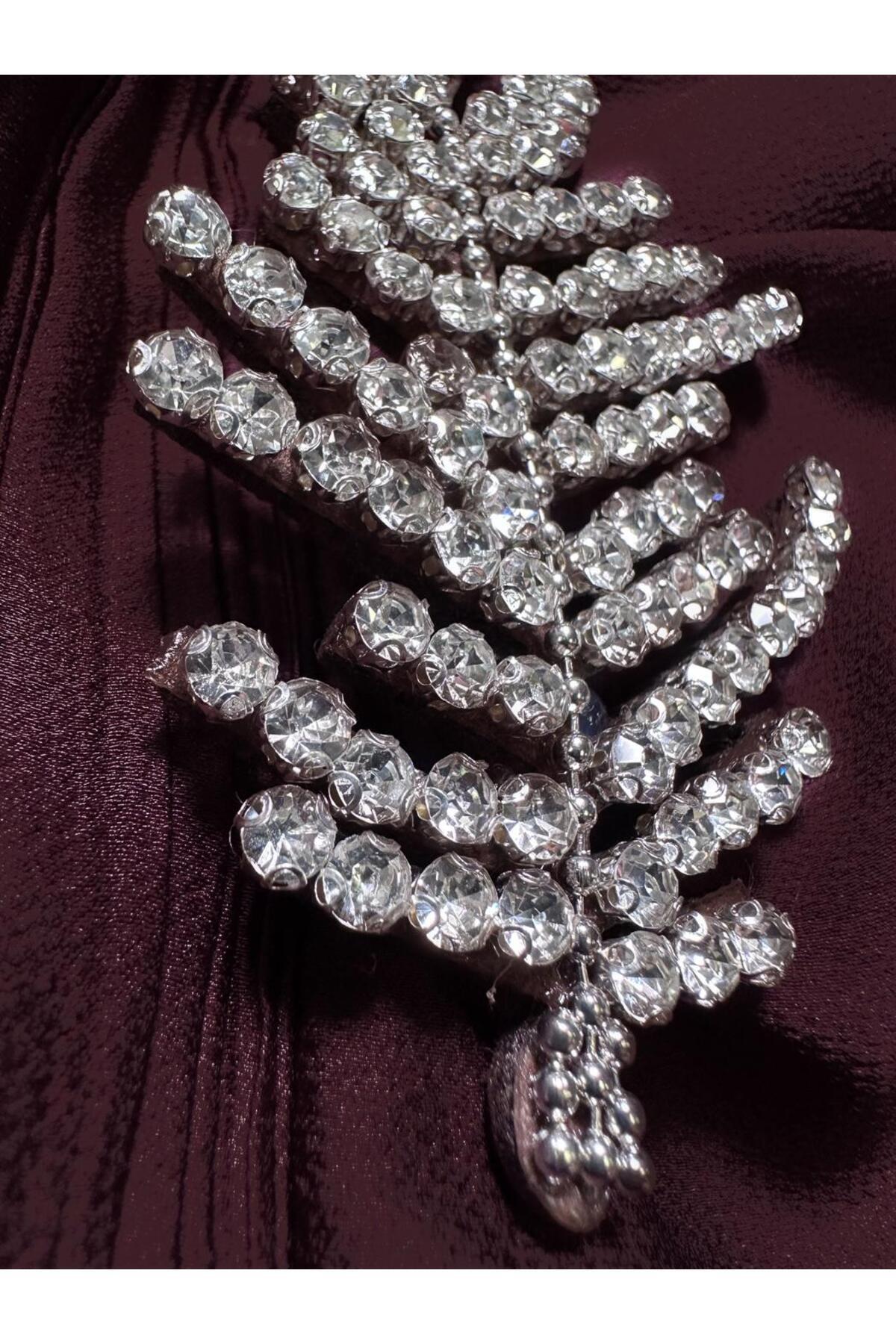 خرید اینترنتی لباس مجلسی ساتن با سنگ دوزی و کمربند ۴۳۵۱۰ برند آلوینا Alvina اورجینال از ALVİNA نمایندگی ترکیه