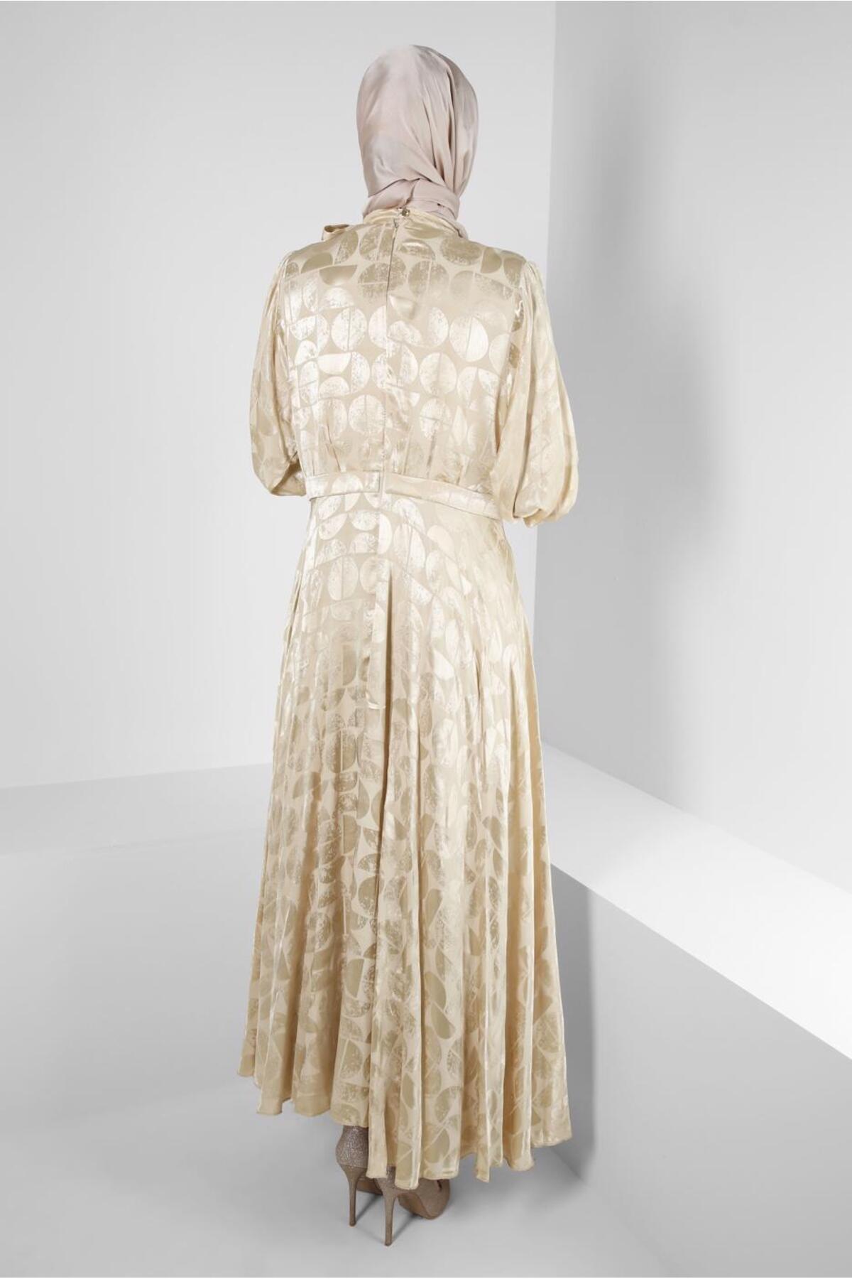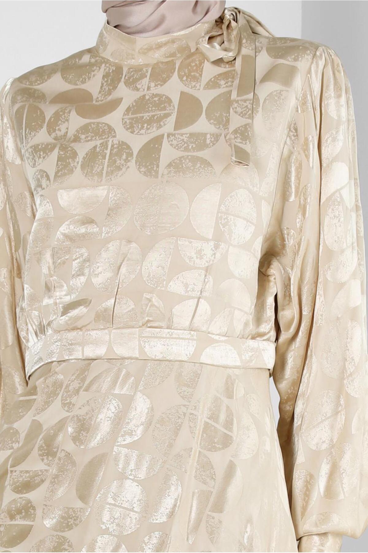 خرید اینترنتی لباس مجلسی ساتن ژاکارد با یقه کراواتی ۴۳۶۱۶ برند آلوینا Alvina اورجینال از ALVİNA نمایندگی ترکیه