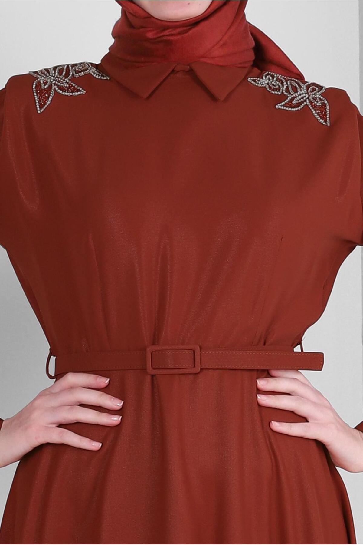 خرید اینترنتی لباس مجلسی کمربنددار با سنگ دوزی و آستردوزی شده کد ۴۳۷۱۸ برند آلوینا Alvina اورجینال از ALVİNA نمایندگی ترکیه