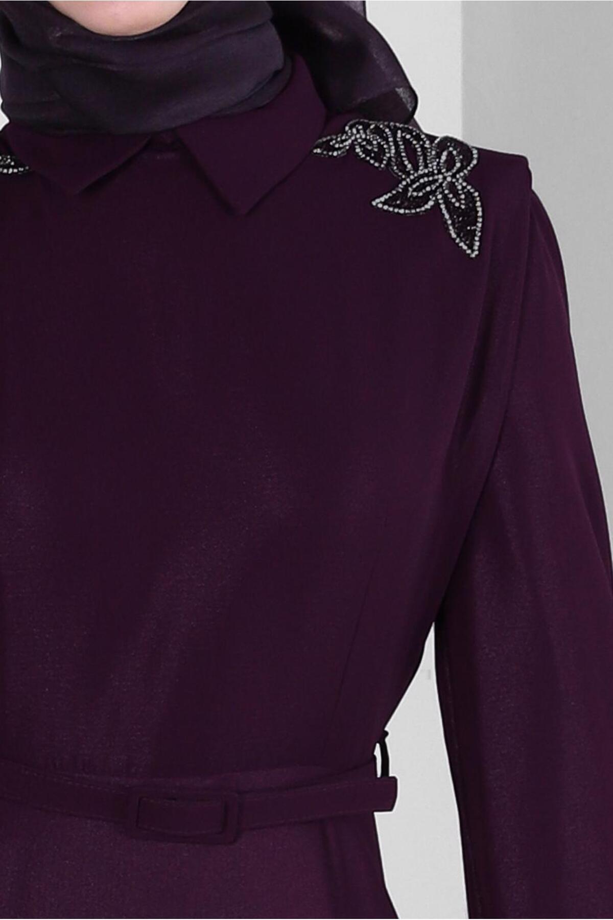 خرید اینترنتی لباس مجلسی کمربنددار با سنگ دوزی و آستردوزی شده کد ۴۳۷۱۸ برند آلوینا Alvina اورجینال از ALVİNA نمایندگی ترکیه