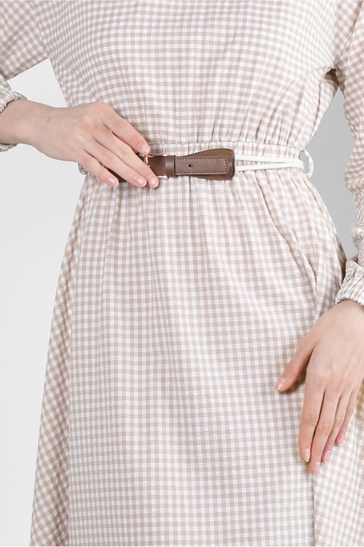 خرید اینترنتی لباس طرح دار Houndstooth با سرآستین های کشی ۴۳۷۲۱ برند آلوینا Alvina اورجینال از ALVİNA نمایندگی ترکیه