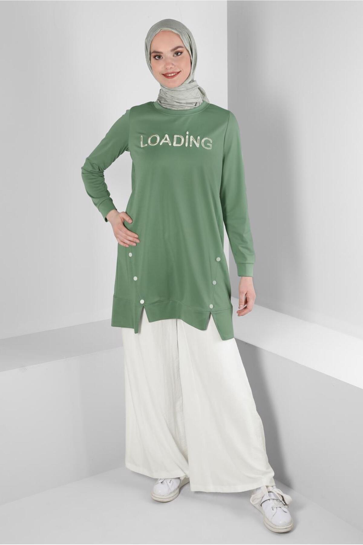 خرید اینترنتی دکمه چاپی نوشتاری، تونیک ورزشی طرحدار ۴۳۳۴۸ برند آلوینا Alvina اورجینال از ALVİNA نمایندگی ترکیه