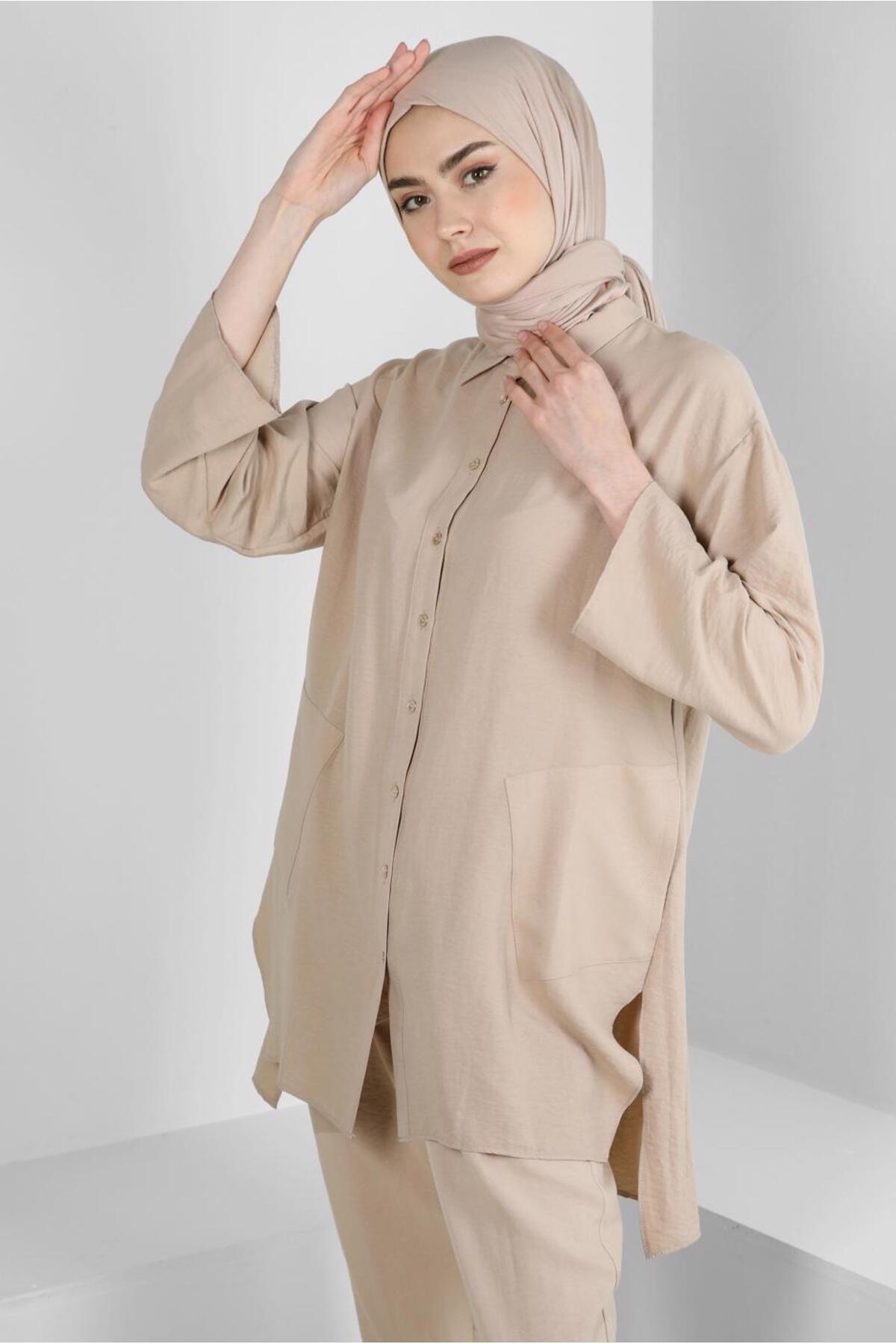 خرید اینترنتی ست شلوار دو تکه دکمهدار یقه پیراهنی ۴۳۵۹۷ برند آلوینا Alvina اورجینال از ALVİNA نمایندگی ترکیه