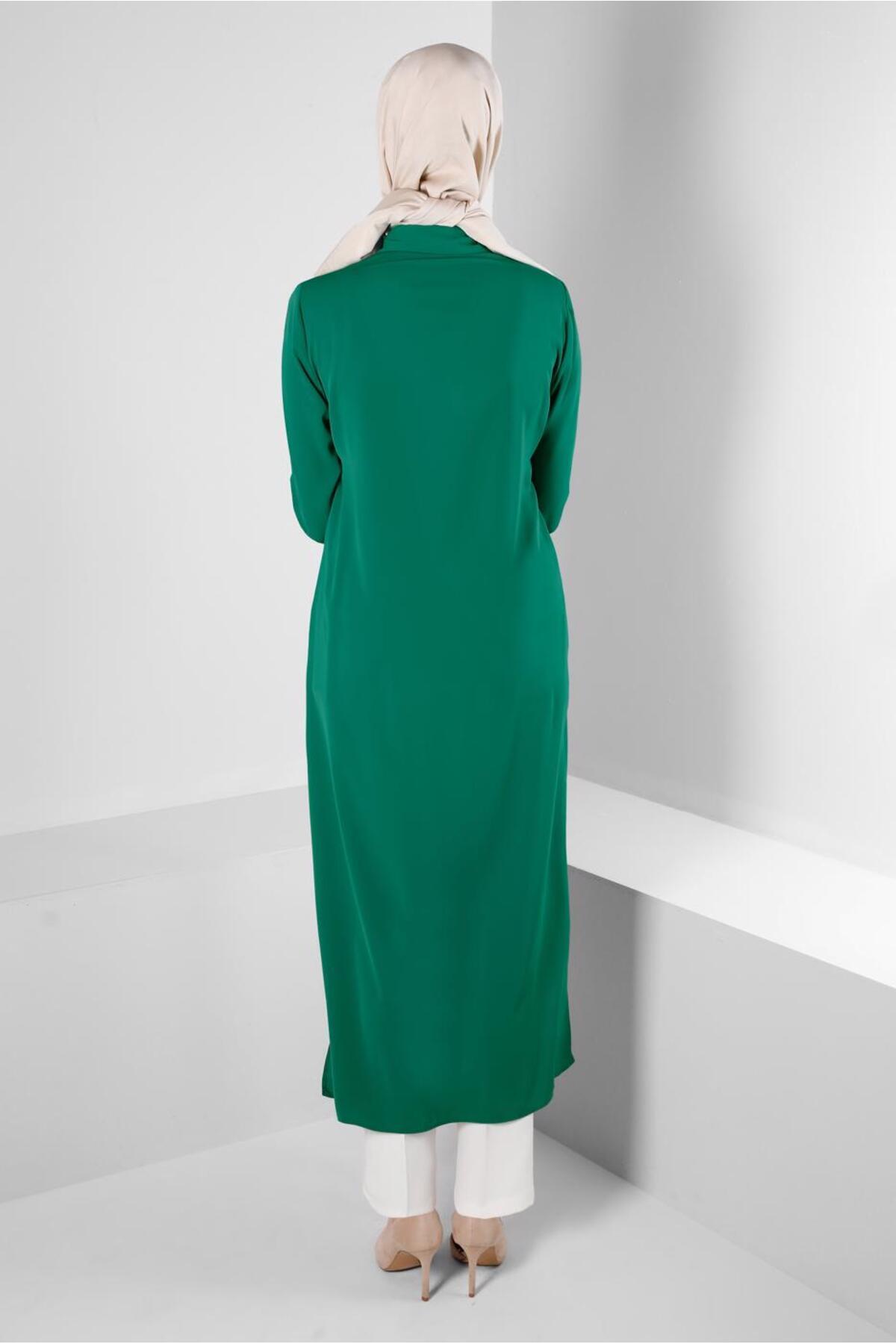 – این تونیک که مخصوص مجموعه لباسهای پوشیده طراحی شده است، ظاهری راحت و شیک ارائه میدهد.