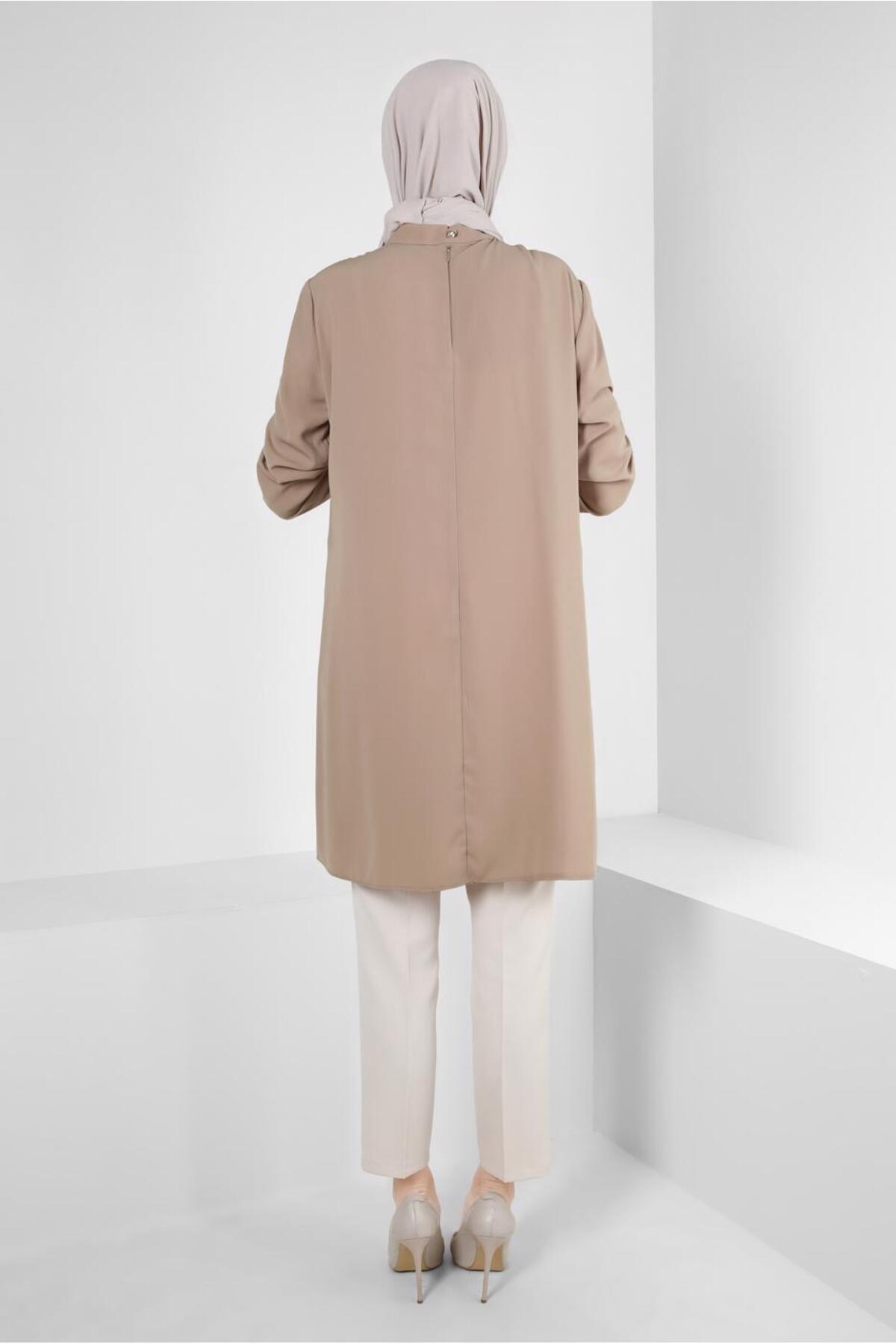 این تونیک که ظاهری شیک به رنگ سمور دارد، برای کسانی که به دنبال راحتی و ظرافت در لباسهای روزمره هستند، ایدهآل است.
