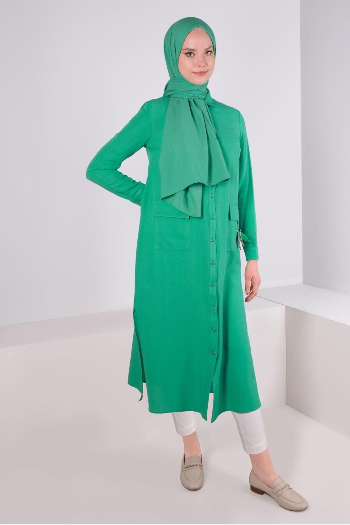 خرید اینترنتی تونیک دکمهدار با جیب، جزئیات ۴۳۵۸۳ برند آلوینا Alvina اورجینال از ALVİNA نمایندگی ترکیه