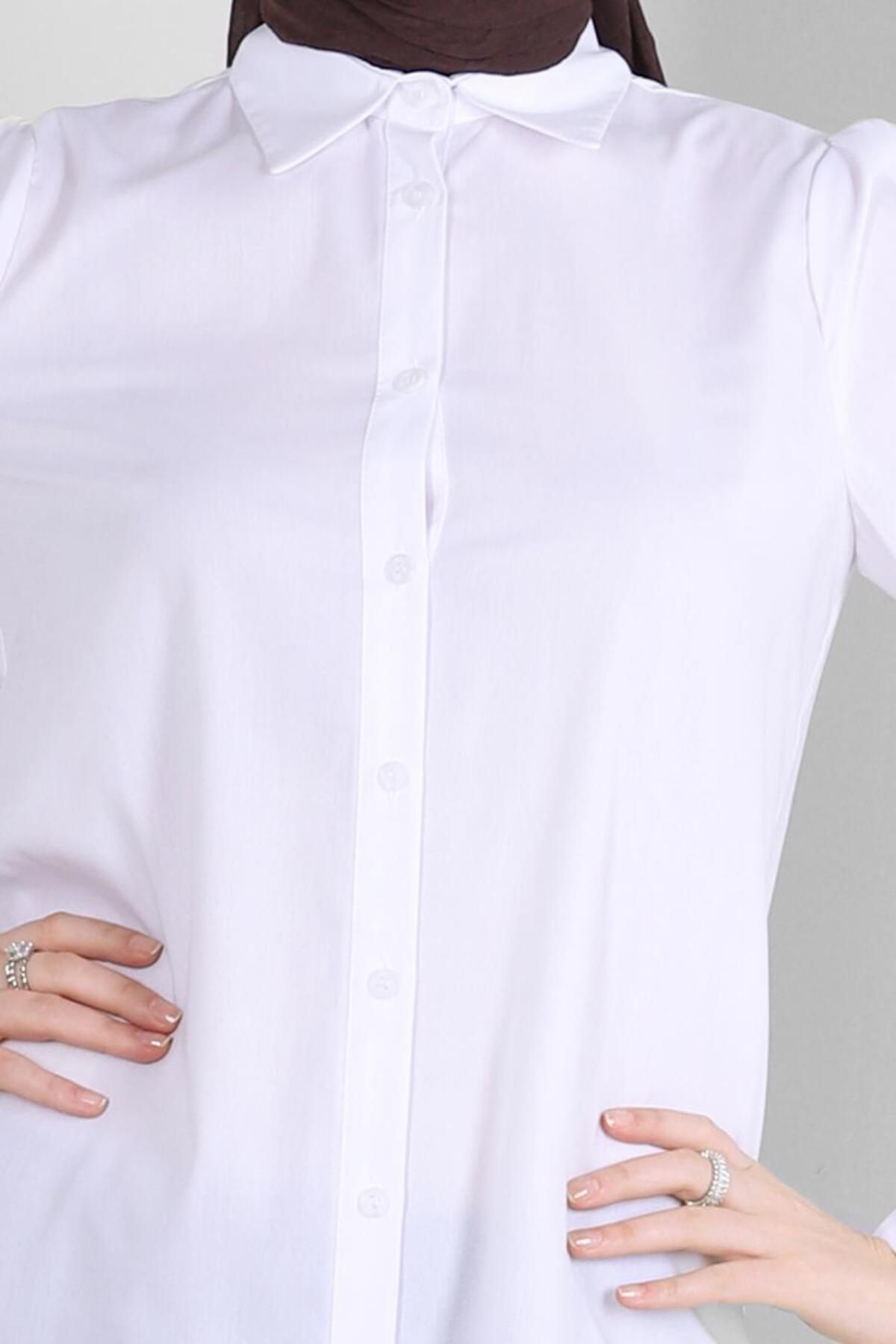 جزئیات یقه پیراهن، ظاهری مدرن و زیبا به آن میبخشد، در حالی که جزئیات دکمهها با جزئیات کلاسیک تکمیل میشود.