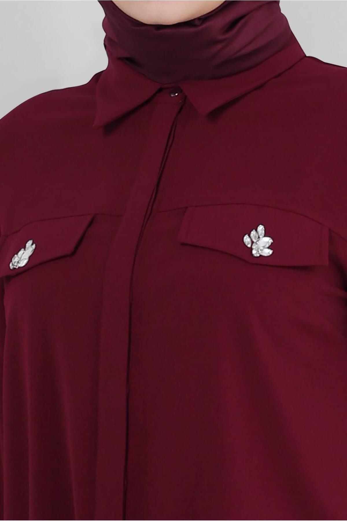 این تونیک که به مجموعه لباسهای پوشیده و محجوب اضافه شده است، با رنگ زرشکی خود، سبکی چشمگیر ارائه میدهد.