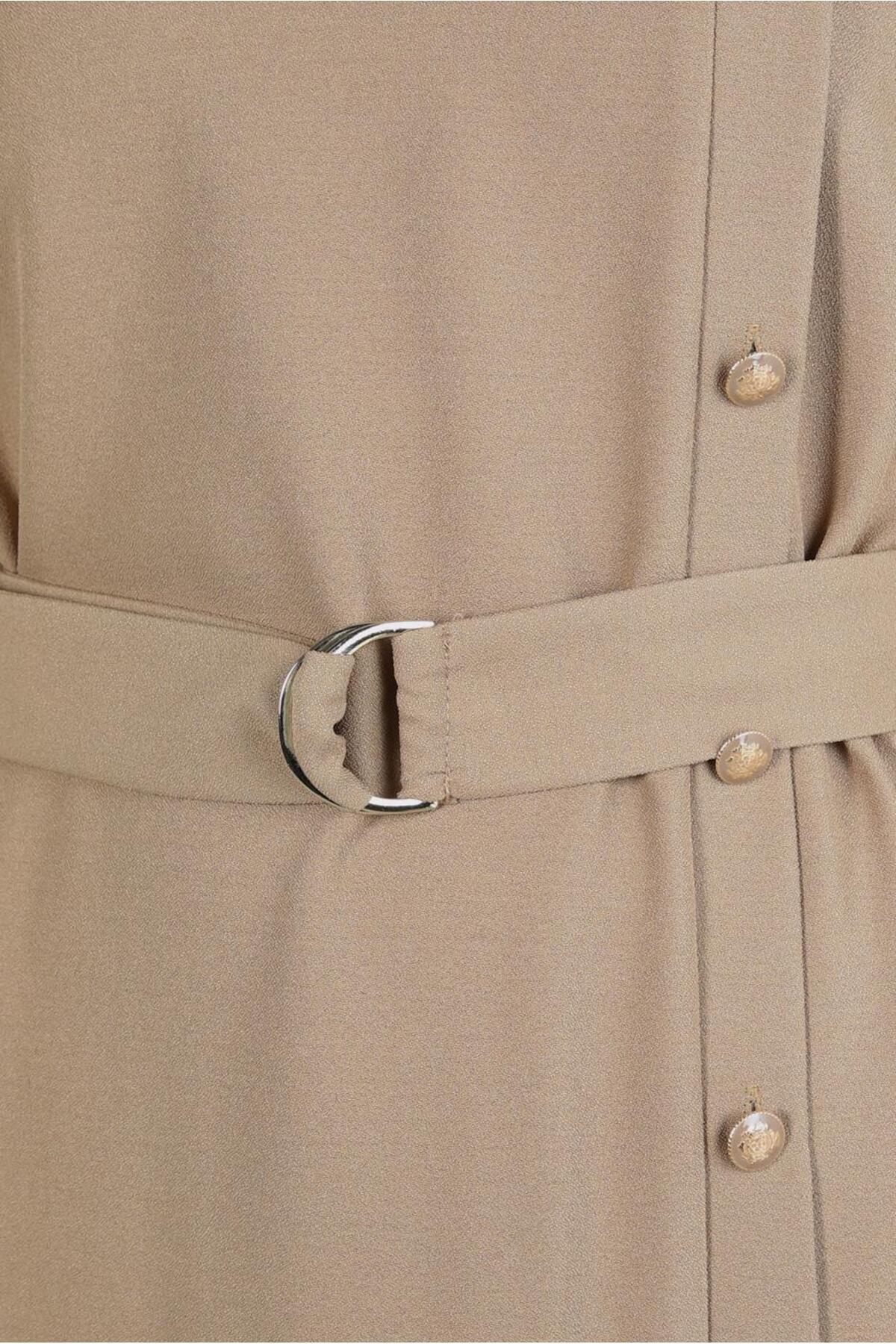 طراحی کمربنددار آن، به آرامی خطوط بدن را در بر میگیرد و ظاهری زنانه ایجاد میکند.