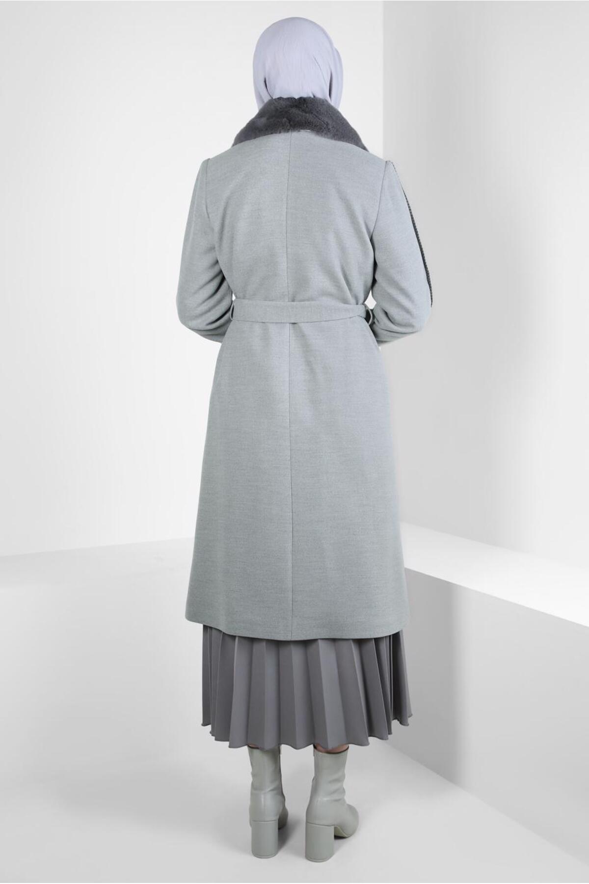 یقه خزدار ظاهری شیک به آن میبخشد، در حالی که طراحی صاف آن، مکمل هر لباسی است.