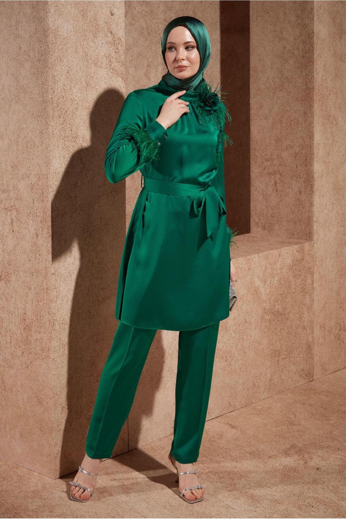 خرید اینترنتی ست شلوار کمربنددار طرح پر کد ۳۰۴۳۲ برند آلوینا Alvina اورجینال از ALVİNA نمایندگی ترکیه