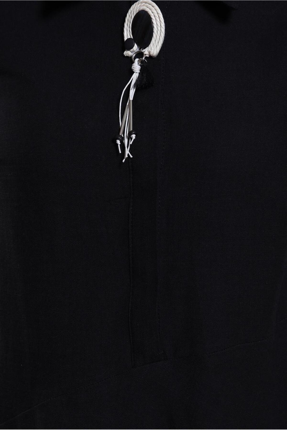 بست دکمهدار، کاربردی است، در حالی که جزئیات یقه پیراهن روی تونیک، ظاهری کلاسیک و زیبا به آن میبخشد.