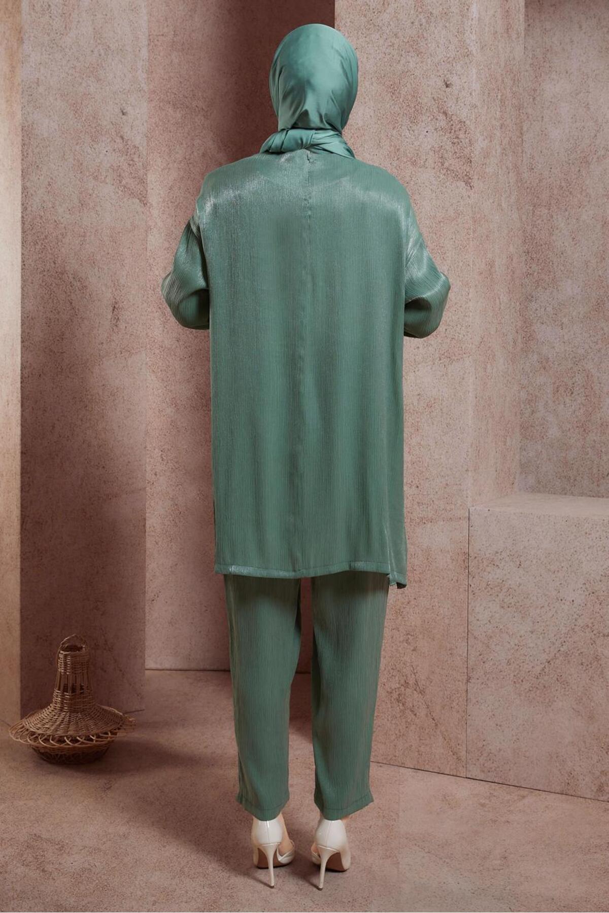 این کت و شلوار بلند، ظاهری شیک و زیبا ارائه میدهد و آن را به بخشی ضروری از مجموعه لباسهای پوشیده تبدیل میکند.