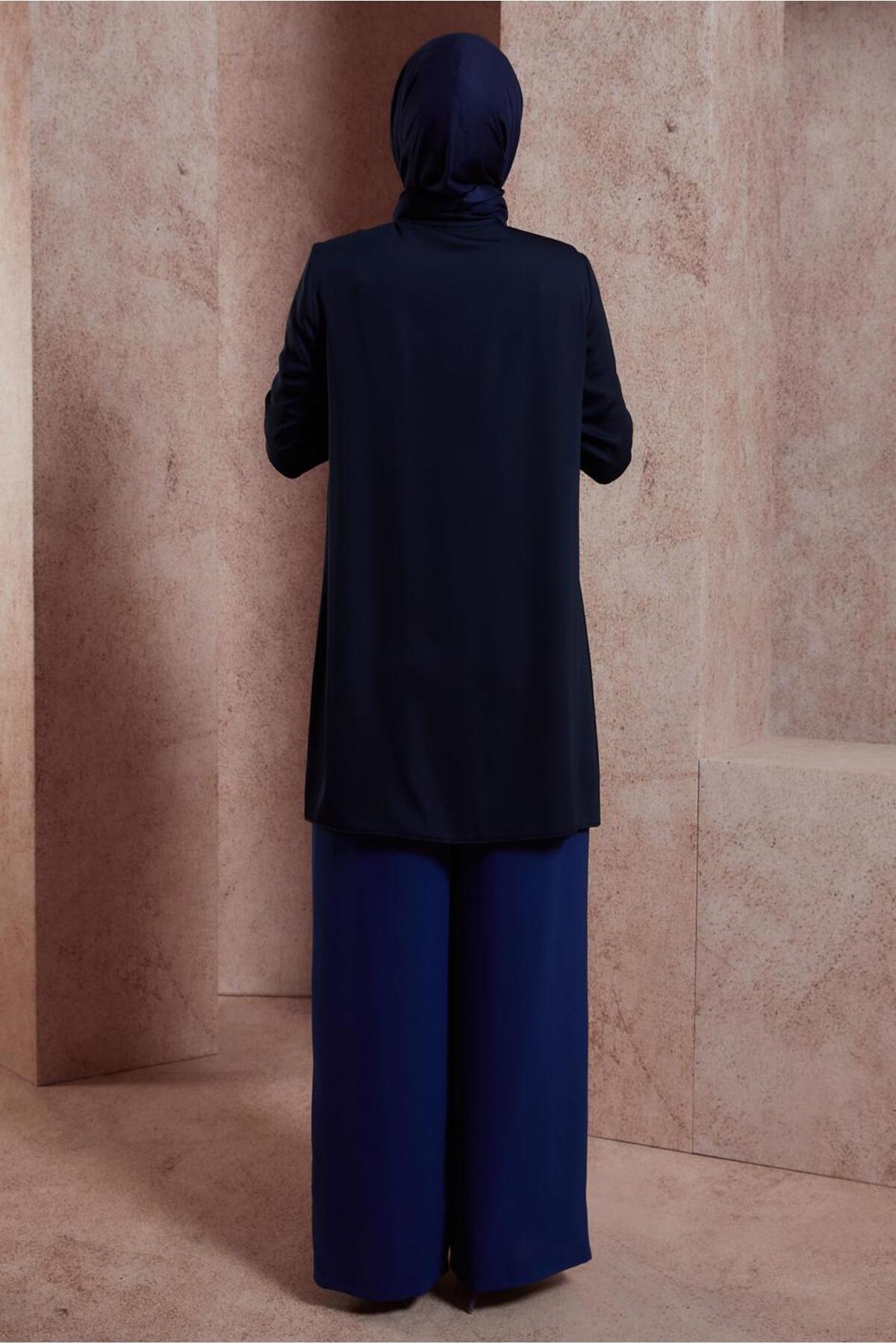 یک تونیک ساده و ساده به رنگ سرمهای با طراحی کلاسیک که در هر موقعیتی شیک به نظر میرسد.